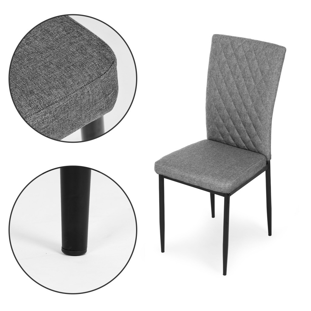 The chairs are characterized by a modern style that fits perfectly into various interior arrangements, from minimalist to more classic ones. Simple lines and elegant appearance add charm to the interior. Gray quilted backrests not only add elegance to the chairs, but also provide additional comfort . These chairs will fit perfectly with the family table in your dining room and kitchen. Their elegant, gray color goes perfectly with various interior styles, from modern to more traditional.