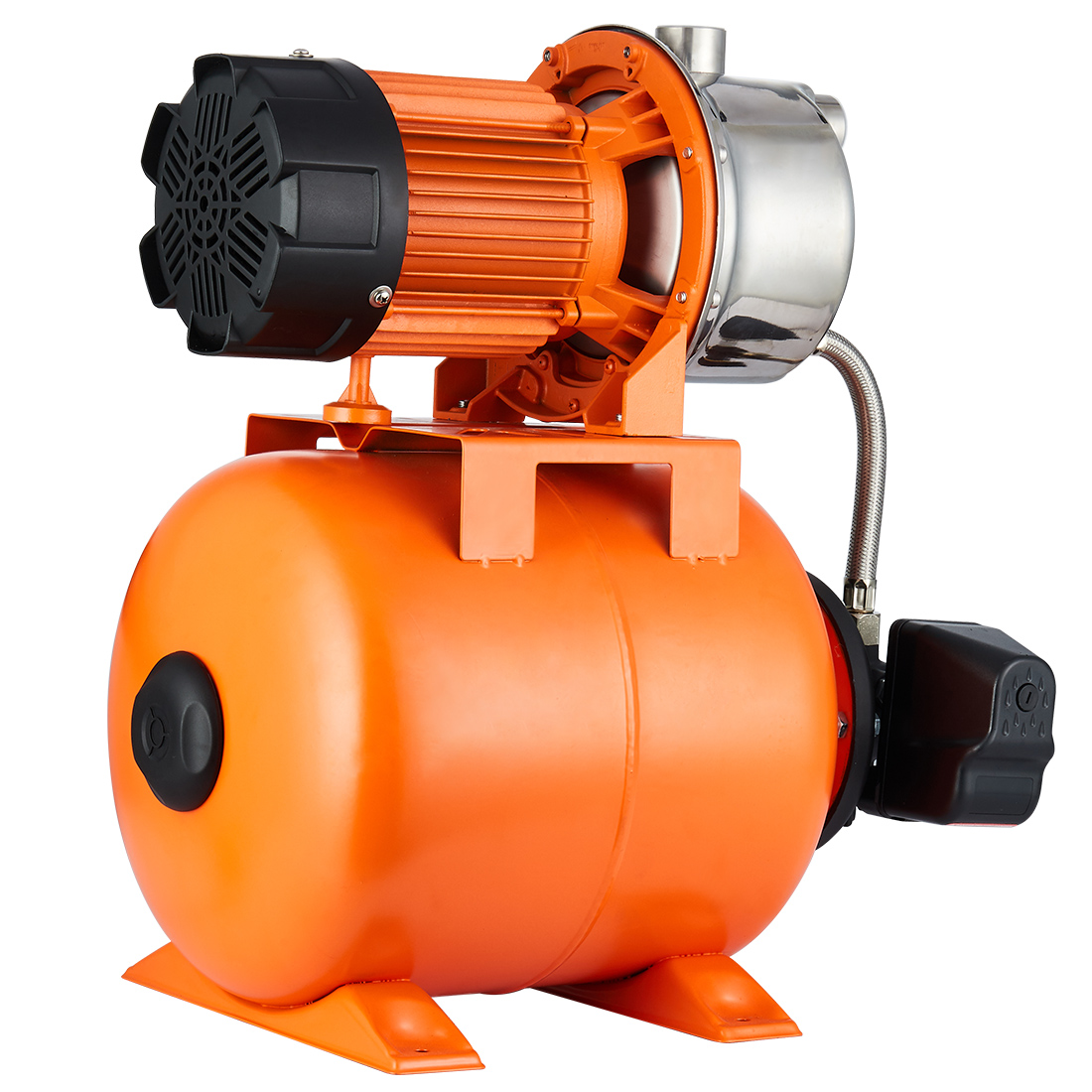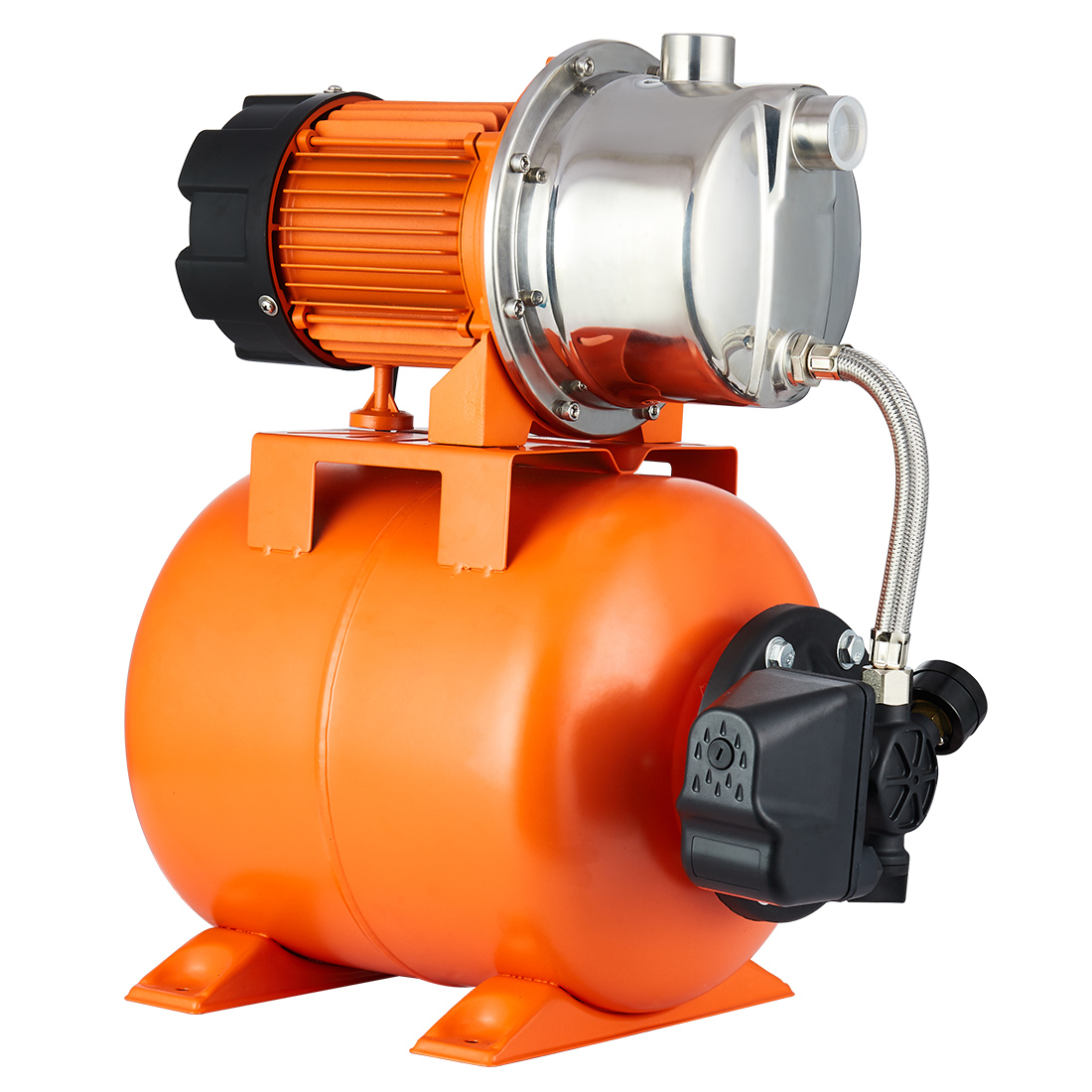 Az EKJ-1202SA 1200W-os motorral, rozsdamentes acél (INOX) házzal és 20l-es tartállyal szerelt önfelszívó házi vízmű, mely megbízható megoldást kínál tiszta víz szállítására fúrott vagy gyűrűs kutakból. Fő felhasználási területük a zöld felületek és kertek szórófejes vagy árasztásos öntözése, de alkalmas akár egy háztartás vízellátásnak biztosítása (pl. WC, mosógép), amivel ivóvizet takaríthat meg. A vízművek egy jet szivattyúból és egy 20l –es tartályból valamint a működéshez szükséges nyomáskapcsoló és mérő egységekből állnak. Előnyük az egyszerű szivattyúhoz képest, hogy jelentősen kisebb nyomásingadozással dolgoznak (ez különösen kedvező az automata öntöző rendszerekhez) és képesek az automatikus ki/be kapcsolásra a vízigénynek megfelelően pl. egy kerti csap vagy kézi locsolófej működtetésére. A szivattyú motor túlterhelés elleni védettséggel valamint 1,5m tápkábellel van ellátva. Egyszerűen üzembe helyezhető, a BE/KI kapcsolást fröccsenő víztől védett kapcsoló segíti. A berendezés stabil tömítettségét kerámiabetétes axiális csúszógyűrűs tömítés biztosítja. A csúszógyűrűs tömítés működéséhez szükséges az állandó vízellátás, ezért a rendszer szárazon futását el kell kerülni. A szárazon futás elleni védelemre az elektromágneses kapcsolónk PS01-A vagy PS01-B használatát javasoljuk. A szivattyú szívó és nyomoldalán G1” (30,3mm) belső menetes csatlakozás található. A minél nagyobb vízszállítás elérése érdekében javasoljuk szívó oldalon az 1” (25mm) átmérőjű visszacsapó szeleppel ellátott szívó cső (kiegészítőink kínálatában megtalálható), nyomó oldalon 3” (19mm) belső átmérőjű locsoló cső használatát. A házi vízműbe integrált jet szivattyú egyik fő előnye az önfelszívó képesség, így elég beüzemeléskor feltölteni a rendszert és ha a szívóoldal megfelelően zárt, akkor csak ritkán lesz szükség utántöltésre a folyamatos vízoszlop megtartásához. A jet rendszerű szivattyú másik előnye, hogy a vizet relatív mélyről akár 7m –ről (kútból, tóból) is fel tudja szívni és azt relatív nagy nyomáson a motor teljesítményétől függően 3,5..4,8bar továbbítja. (Ez a nyomás 35…48m közötti szállítási magasságnak felel meg, és a körülményektől függően alkalmas lehet kb. három öntözőfej üzemeltetéséhez.)