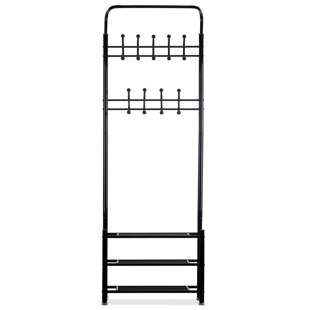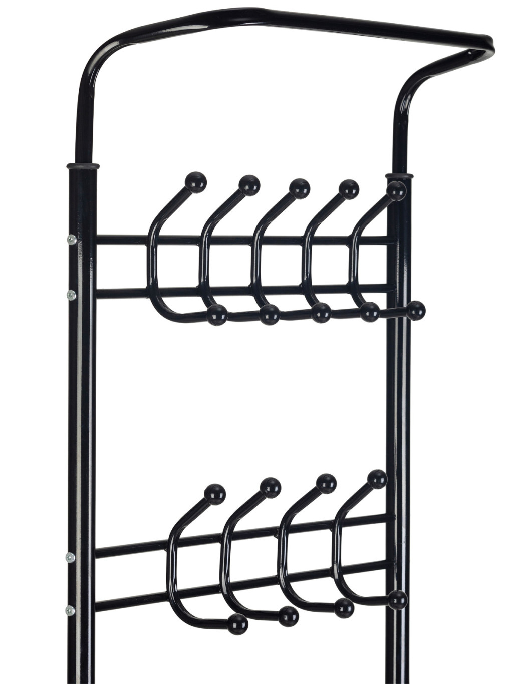 A felső részben két sorban 18 akasztó található, a nagyszámú akasztónak köszönhetően tökéletes otthoni szekrényekhez, irodákhoz vagy várótermekhez.
