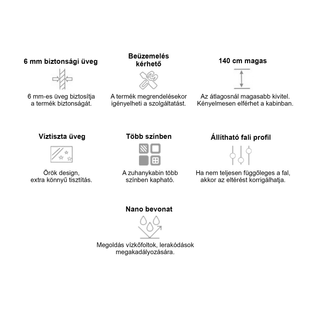 A terméket akár szakszervizes beépítéssel is megtudja rendelni, így az összeszerelésen sincs oka aggódni! 6 mm-es edzett biztonsági üveggel van ellátva. A funkcionalitás mellett természetesen a kádparaván megjelenésére is nagy figyelmet fordítottak. Üvegfelületének és letisztult, modern vonalainak köszönhetően elegáns megjelenést teremt minden fürdőszábanak. A kádparavánt íves kialakításúra tervezték a biztonságos tusolás érdekében.