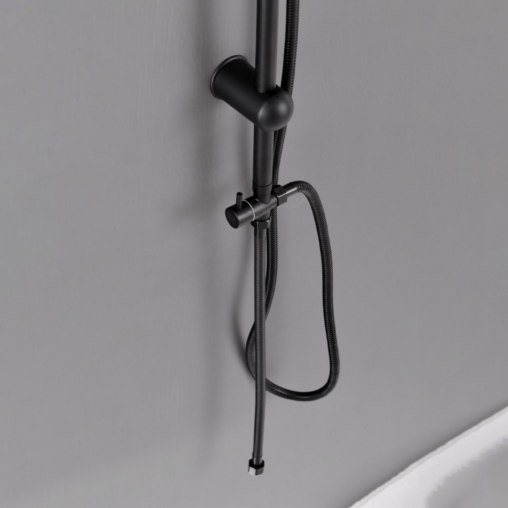 Az Altar Black zuhanyszett tartalmaz két állású funkcióváltót az ABS fekete kézizuhany és az 1,20 cm-es felső esőztető közötti váltás érdekében. A zuhanyszett teste rozsdamentes acélból készül, mely festett fekete színű. A két tartókonzol magassága állítható. A kézizuhany 1,5 m-es zuhanytömlővel rendelkezik.A zuhanyszettet a talajtól 85 cm-re ajánlott felszerelni.
