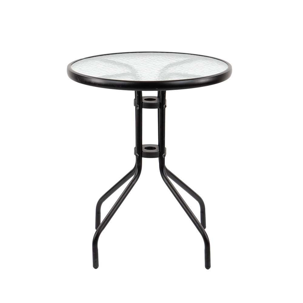 Ez a kerek fémvázas kerti asztal egyaránt funkcionális és esztétikus. A fémváz biztosítja a tartósságot és stabilitást, míg az üveglap modern, elegáns megjelenést kölcsönöz. Az 5 mm vastagságú edzett üveglap tartós és ellenáll az időjárási viszonyoknak, így hosszú éveken át megőrzi eredeti állapotát.