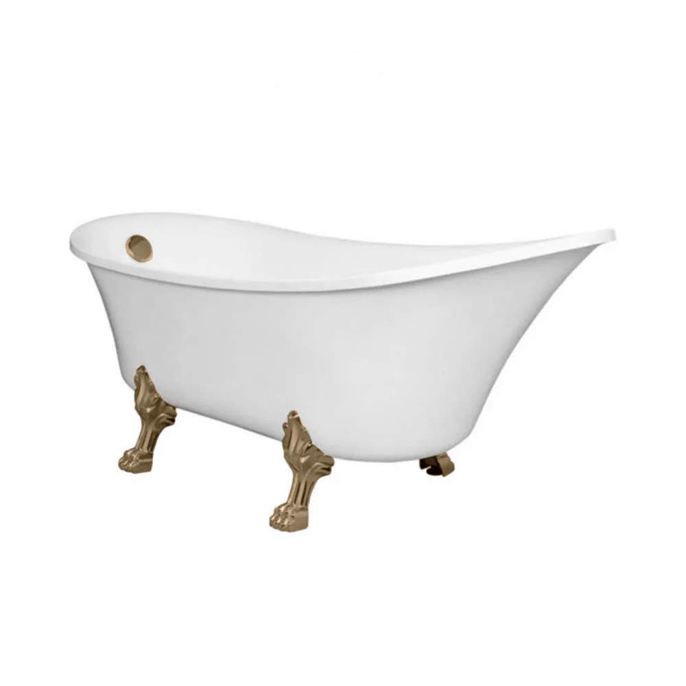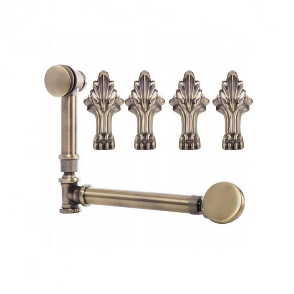 Antica szabadon álló kád antik réz lábakkal és leeresztővel