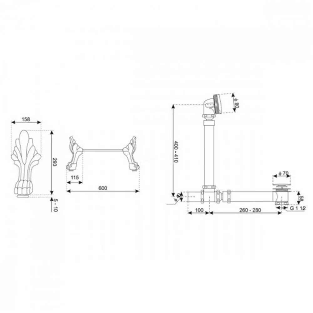 Antica szabadon álló kád fekete lábakkal és leeresztővel