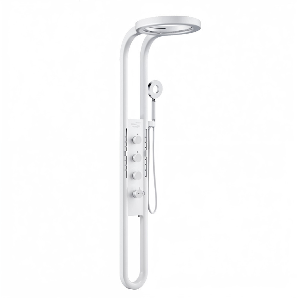 A zuhanypanel rozsdamentes acélból készült, amely garantálja a hosszú élettartamot és a prémium megjelenést. A fehér szín modern eleganciát sugároz, amely bármely fürdőszobai környezethez illeszkedik.