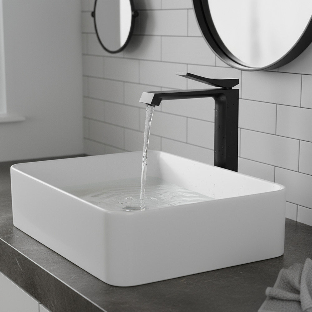 A magasított kialakításnak köszönhetően ideális választás pultos, álló mosdókagylókhoz, ahol a forma és a funkció harmóniája kulcsfontosságú.