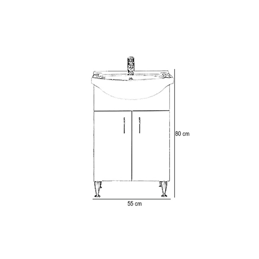 A fürdőszoba bútor kevés helyet foglal viszont tágas szekrénnyel rendelkezik ahol kényelmesen elférnek a fürdőszobai pipere eszközök. Kevés helyigénye miatt kisebb fürdőszobák berendezésére is alkalmas, például panel lakásokban. A termék magas minőségű bútorlapból készül és színben passzoló élzárókkal van ellátva. A fürdőszoba bútor mosdóval együtt kapható.