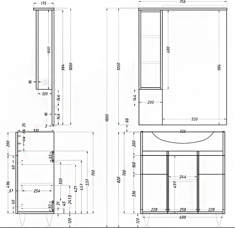 A fürdőszoba bútor kevés helyet foglal viszont tágas szekrénnyel és fiókkal rendelkezik ahol kényelmesen elférnek a fürdőszobai pipere eszközök. Kevés helyigénye miatt kisebb fürdőszobák berendezésére is alkalmas, például panel lakásokban. A termék magas minőségű bútorlapból készül és színben passzoló élzárókkal van ellátva. A fürdőszoba bútor mosdóval együtt kapható.
