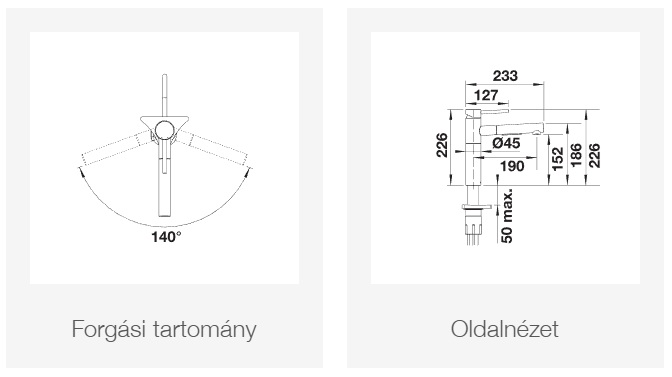 • 140°-ban elforgatható kifolyó a nagyobb elérhetőség érdekében