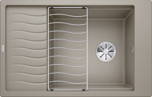 Rozsdamentes csepegtetőrács, lefolyógarnitúra helytakarékos csővel, 3 1/2“-os InFino® szűrőkosár Kompakt egymedencés mosogató, különösen kis konyhákba alkalmas. Praktikus és kényelmes XL medence. Innovatív: a csepegtetőfelület elhúzható rozsdamentes csepegtetőráccsal szélesíthető. A mosogató és tartozékainak modern, hullámvonalas dizájnja tökéletes … Bővebben: BLANCO ELON XL 6 S tartufo exc.n. InFino