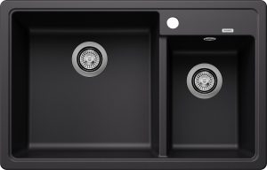 Klasszikus vonalak modern funkcionalitással ötvözve. Tágas hely két medencével. A két medence kényelmesen, párhuzamosan használható. Időtlen dizájn modern konyhákhoz. Lefolyógarnitúra helytakarékos csővel, 2 x 3 1/2“-os szűrőkosárral.
