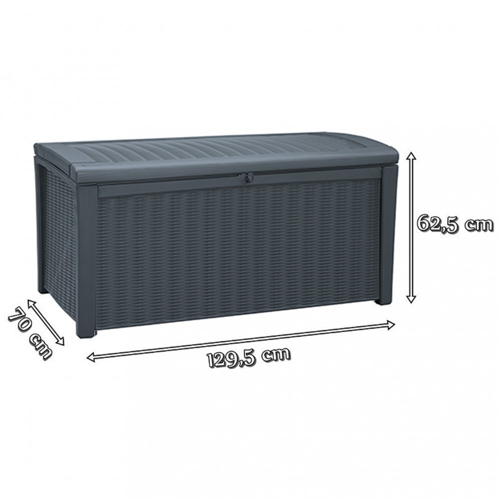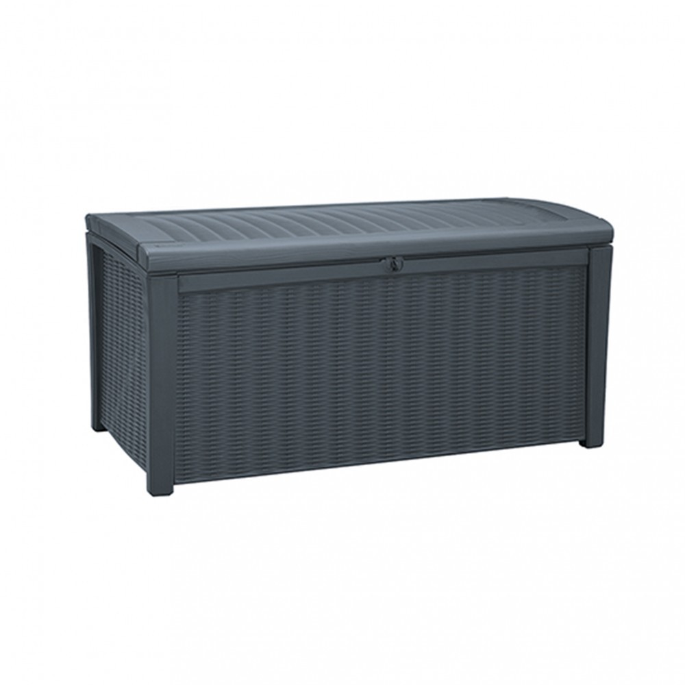 A BORNEO STORAGE BOX egy funkcionális tároló különböző kerti munkálatokhoz szükséges tartozékok tárolására. Gond nélkül elférnek benne például a kézreálló szerszámok. A tároló magas minőségű, légköri tényezők káros hatásainak ellenálló anyagokból készült. A termék további előnye a használatot megkönnyítő, fedélnyitó mechanizmus. A szolid kivitelezésű tároló ülőhelyként is szolgálhat 2 személy számára.