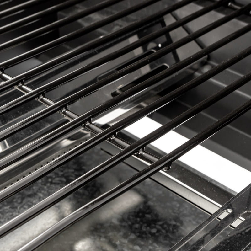 Ez a gázgrill számos funkcionális megoldással van felszerelve, ami rendkívül praktikussá és hatékonnyá teszi. A szerkezetben használt hőmérővel ellátott burkolatnak köszönhetően a sütési folyamat hatékonyabbá válik. Az optimális hőmérséklet fenntartása a grillen garantálja a tökéletesen sült és lédús ételeket. A gyorsan felmelegedő öntöttvas rács hatékonyan vezeti a hőmérsékletet, ami kényelmes sütést és kiváló minőségű ételeket jelent. Az ajtókkal ellátott tároló lehetővé teszi a tartozékok rendszerezését és a gázpalack esztétikus elrejtését. A készlet tartalmaz egy szűkítőt is, amely a gázpalack problémamentes csatlakoztatásához szükséges. A porszórt acélból készült szerkezet biztosítja a tartósságot.