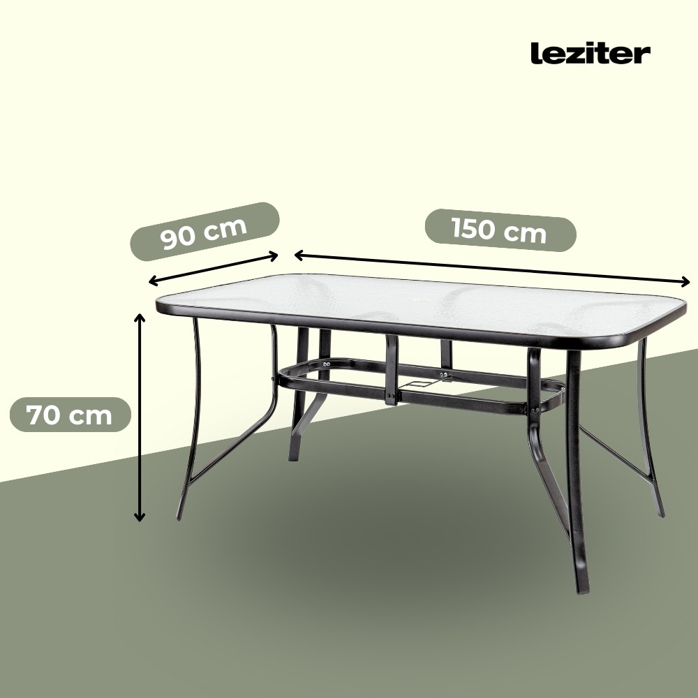 Bemutatjuk a Canillo üveg kerti asztalt, egy praktikus és stílusos bútordarabot, amely illeszkedik bármilyen kertbe vagy teraszba. Téglalap alakú asztallapja 150×90 cm-es, melyhez 70 cm-es asztalmagasság tartozik. Mérete tökéletessé teszi beltéri étkezésekhez és szabadtéri összejövetelekhez egyaránt. A strapabíró, porfestett felületű, 42×14 mm-es fekete acél váz (kereten kialakított rögzítő furatokkal) és a könnyen tisztítható üveglap hosszú élettartamú bútordarabbá teszi ezt az asztalt. A Canillo ideális választás lakossági és kereskedelmi használatra egyaránt ajánlott.