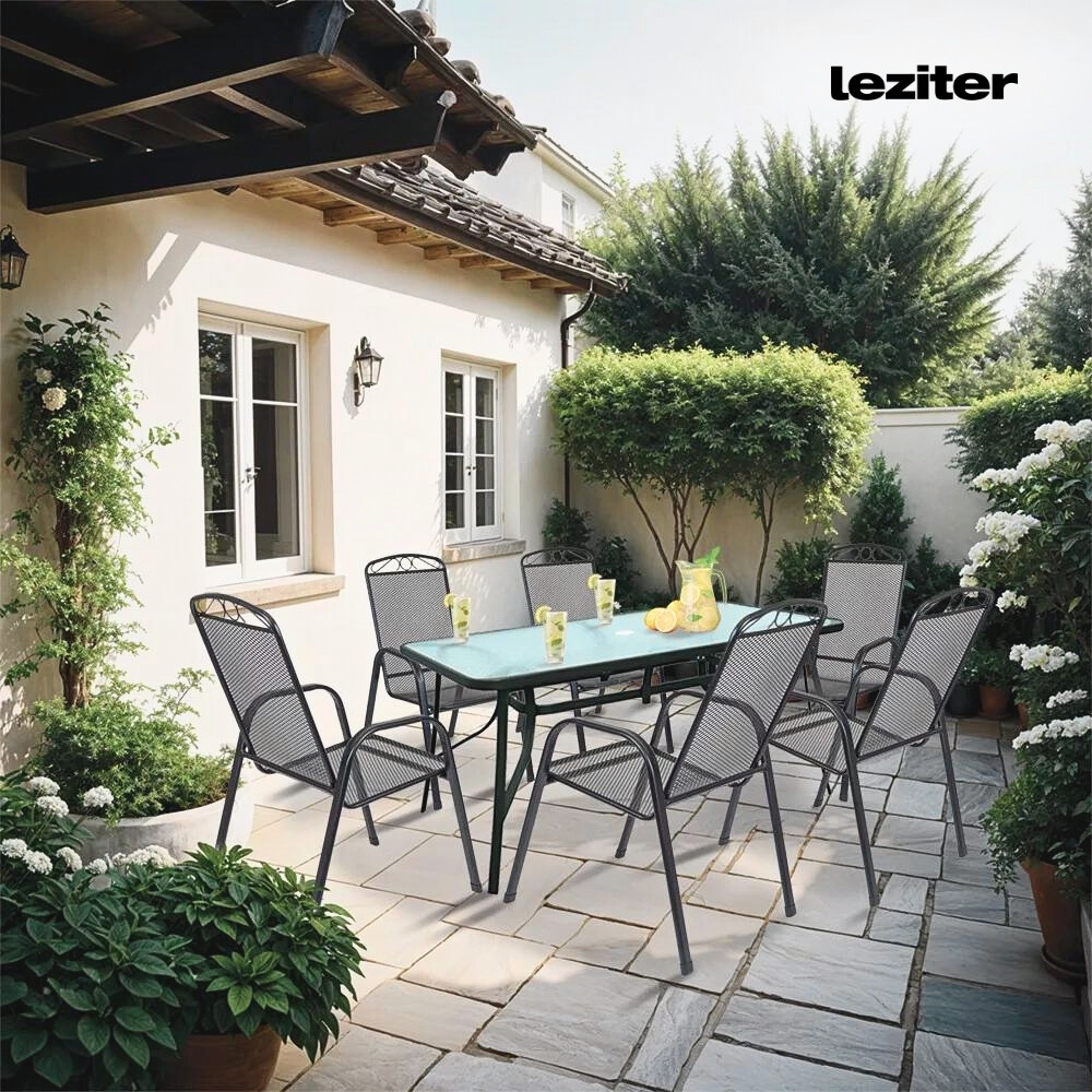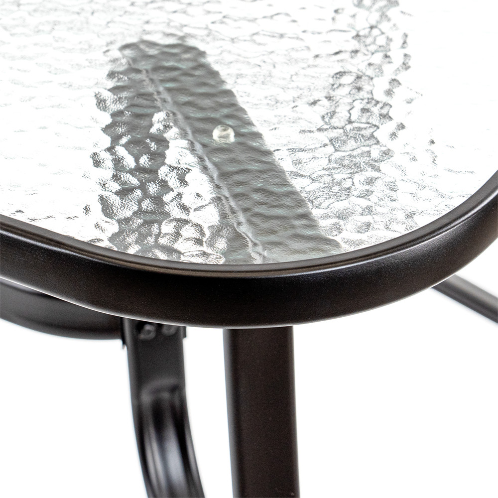 A fémvázas üveg kerti asztalok tartósak és ellenállnak az időjárási viszonyoknak, például esőnek vagy napfénynek. A 42×14 mm-es vastag acél váz porfestett bevonata biztosítja a korrózióállóságot és a hosszú élettartamot.