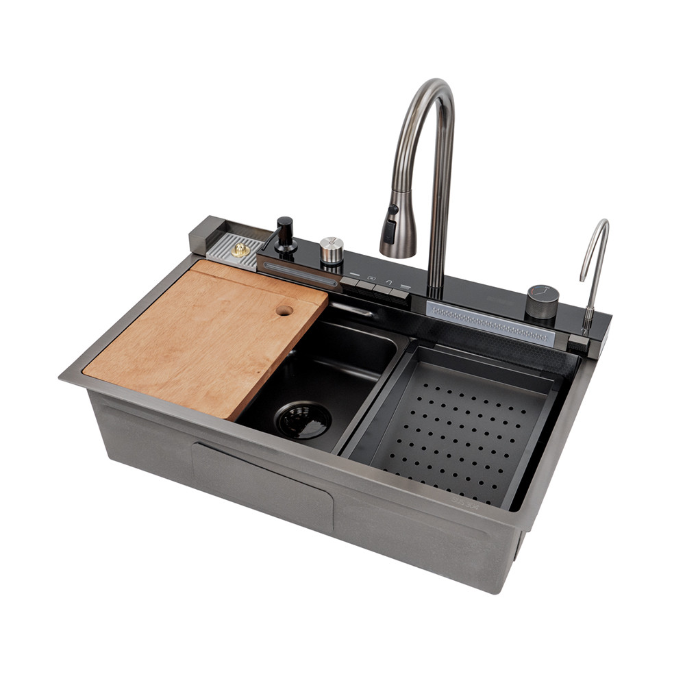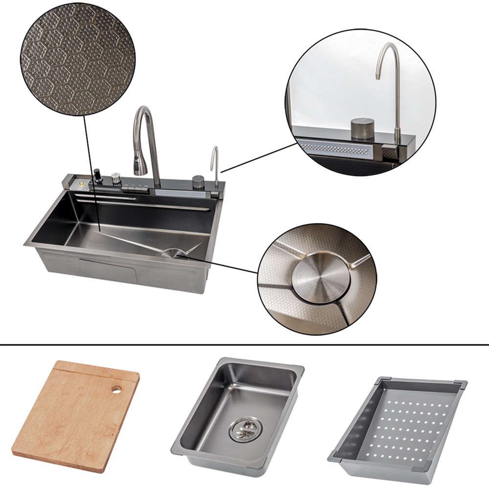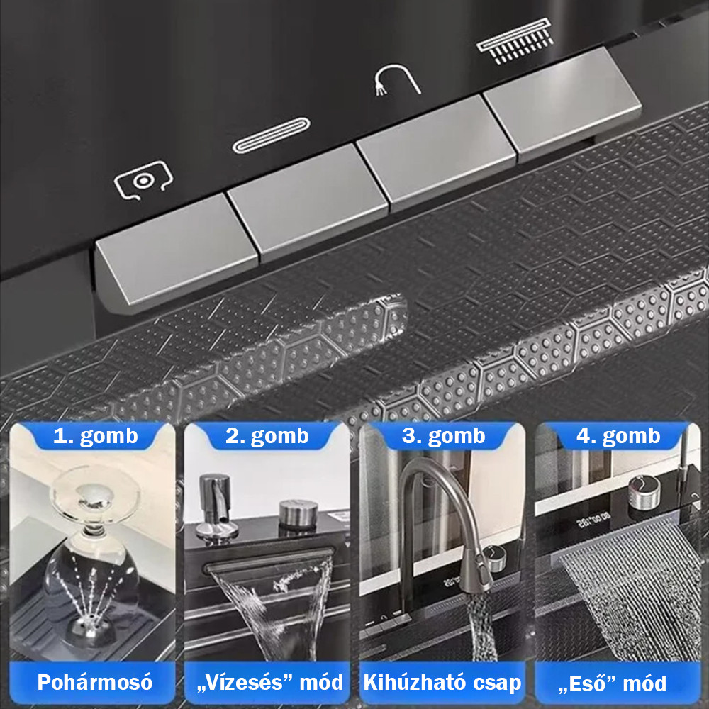 Catania multifunkciós rozsdamentes mosogató digitális csapteleppel