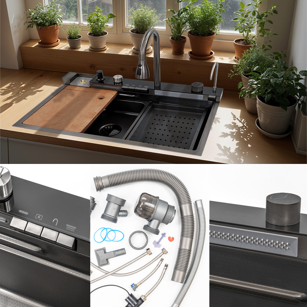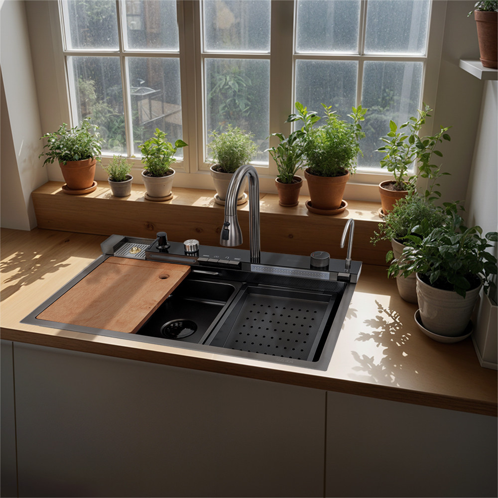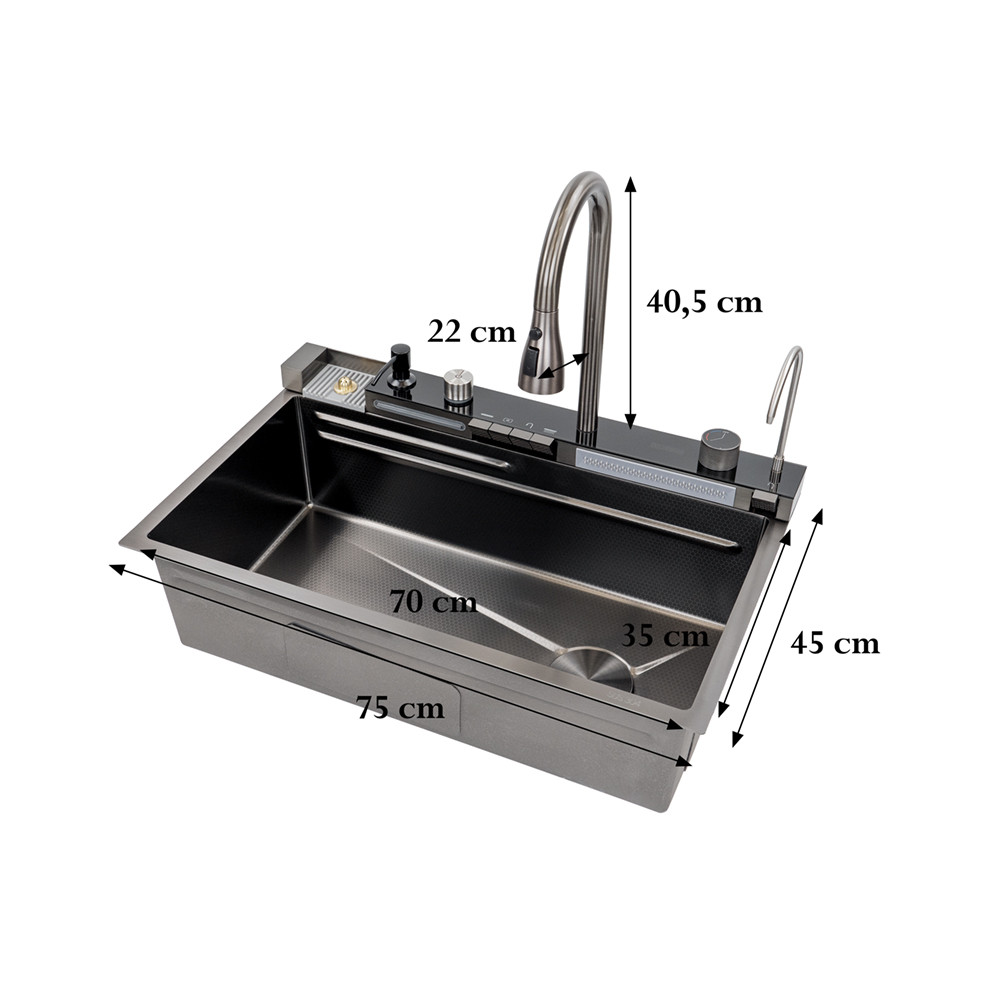 A Catania multifunkciós rozsdamentes mosogató digitális csapteleppel, egy kiváló minőségű mosogató, mely kifejezetten a modern konyhák igényeire lett tervezve. Ez a termék nem csak praktikus és funkcionális, hanem stílusos és esztétikus kialakításával is lenyűgöző.