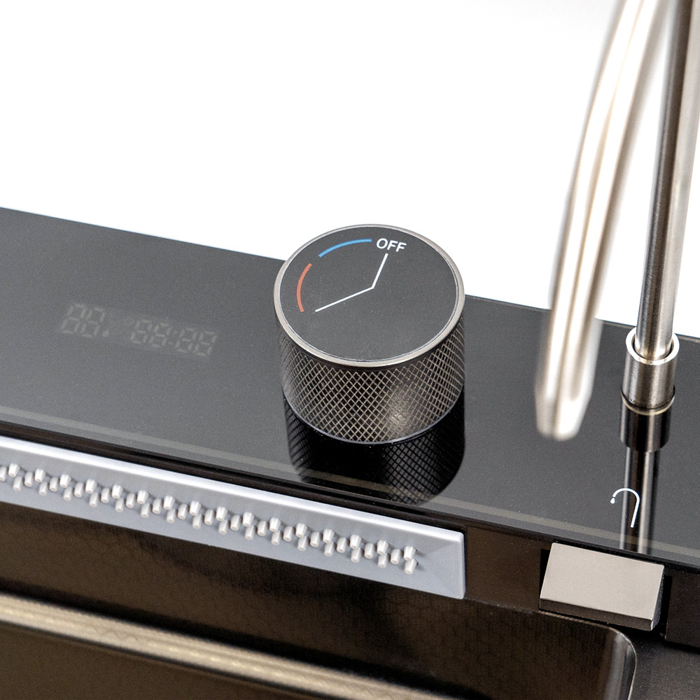 Digitális vezérlőpanel: A mosogatóhoz tartozó digitális kijelző segítségével könnyedén beállíthatod a vízhőmérsékletet és az áramlás erősségét, aminek köszönhetően pontosan szabályozhatod a víz mennyiségét a mosogatás során.
