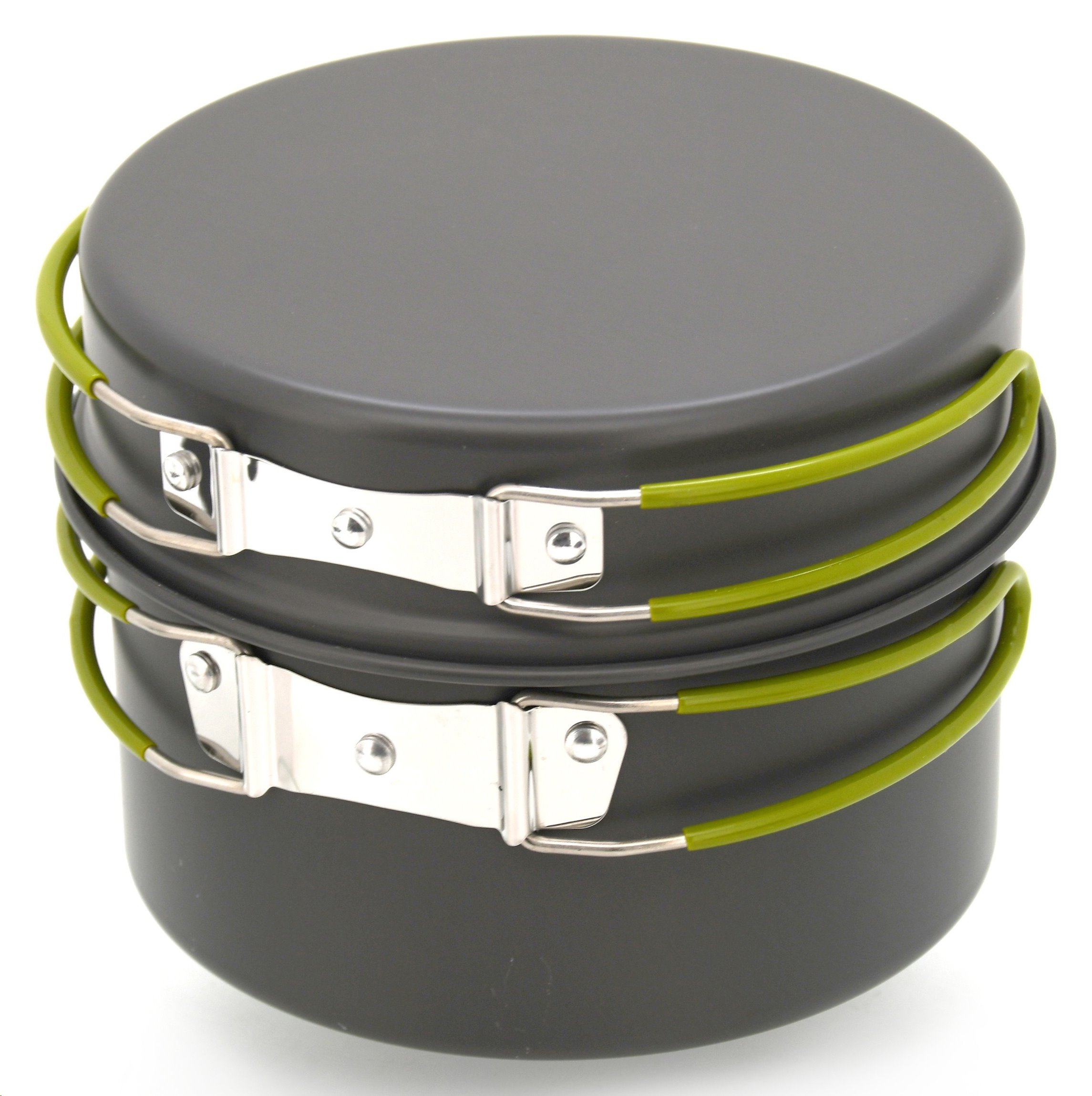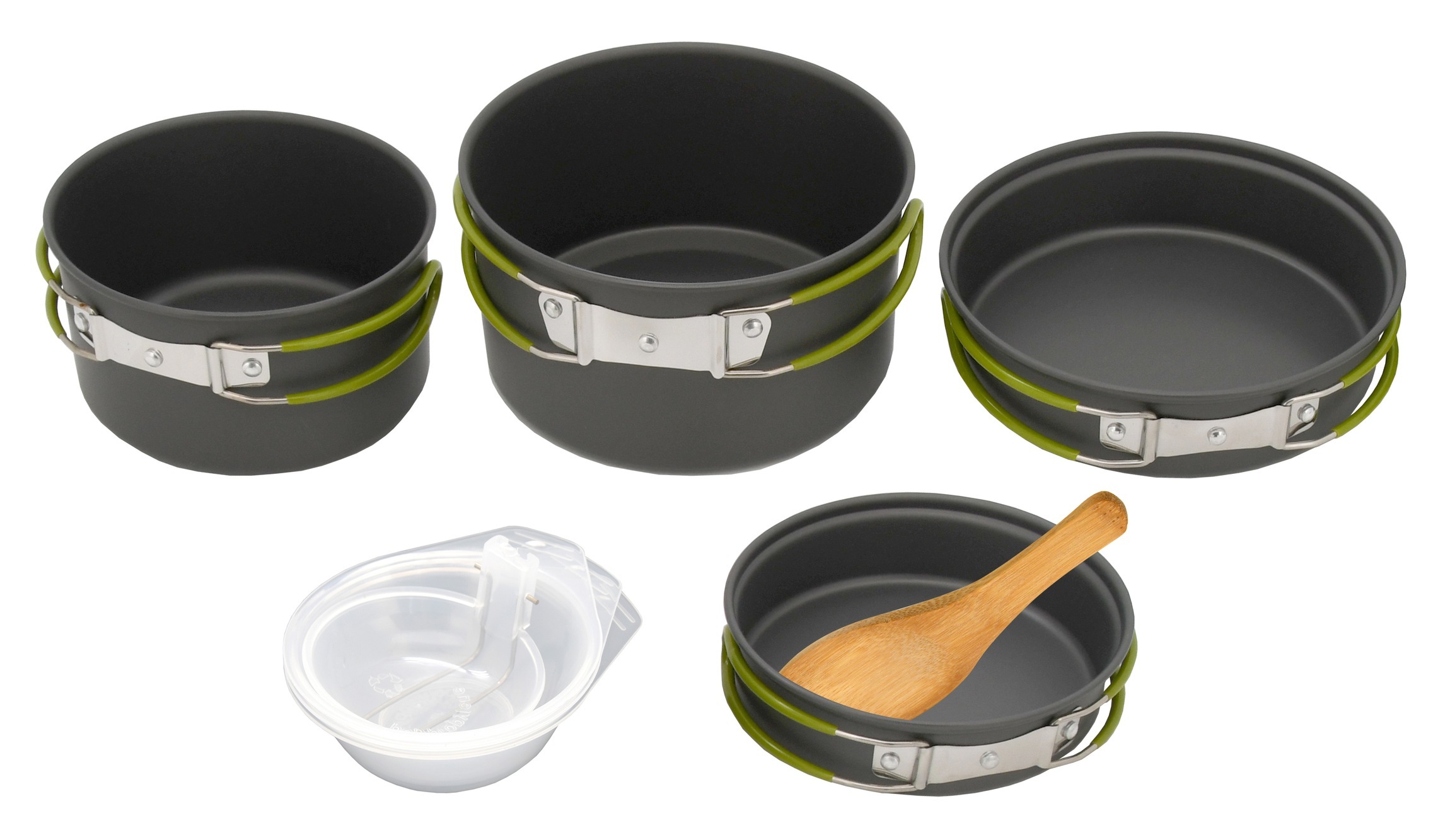 Szeretne kényelmesen főzni finom ételeket a kempingezés alatt a sátorban vagy a lakókocsiban? A Cattara Brew kültéri edénykészlet jól fog szolgálni és megfelel az elvárásainak. Ez a 9darabos készlet, eloxált alumíniumból, 2 fazekat, 2 lábast, 2 serpenyőt és 3 tálat tartalmaz. A különböző méreteknek köszönhetően az edényeket egymásba lehet rakni. A kényelmes kezelés érdekében a fazekak lehajtható fogantyúkkal vannak ellátva, szilikonos védőkkel. A készlet edénytisztító dörzsit, 13 cm-es fakanalat és lehajtható merőkanalat tartalmaz. Minden egy praktikus hálós táskában van elhelyezve, tehát a készlet áthelyezése nagyon egyszerű.