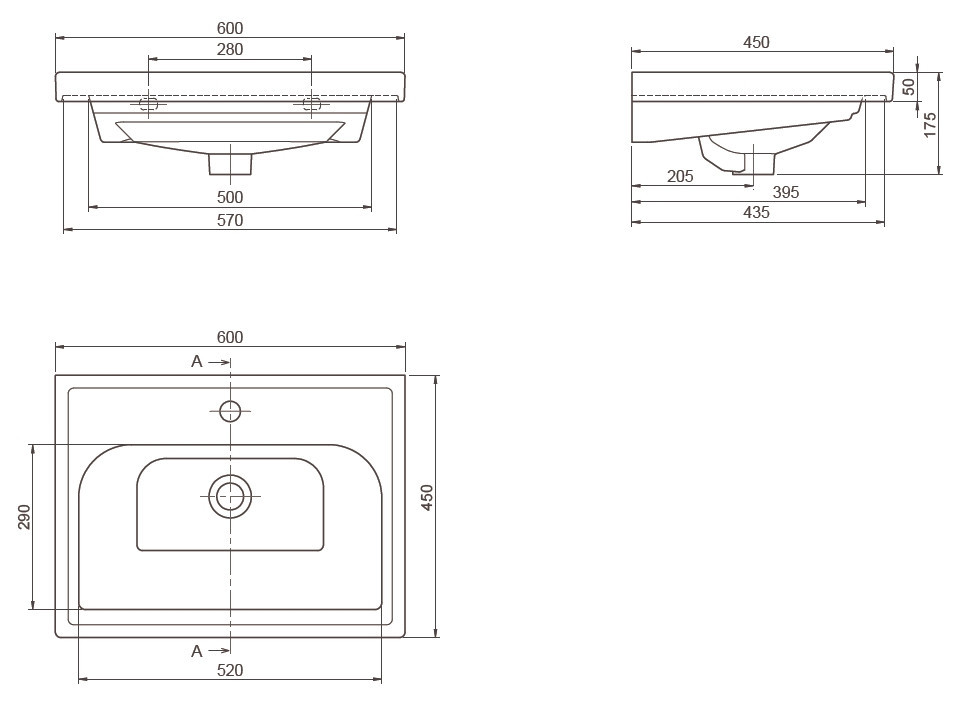 CeraStyle FRAME – porcelán mosdókagyló – 60 x 45 cm