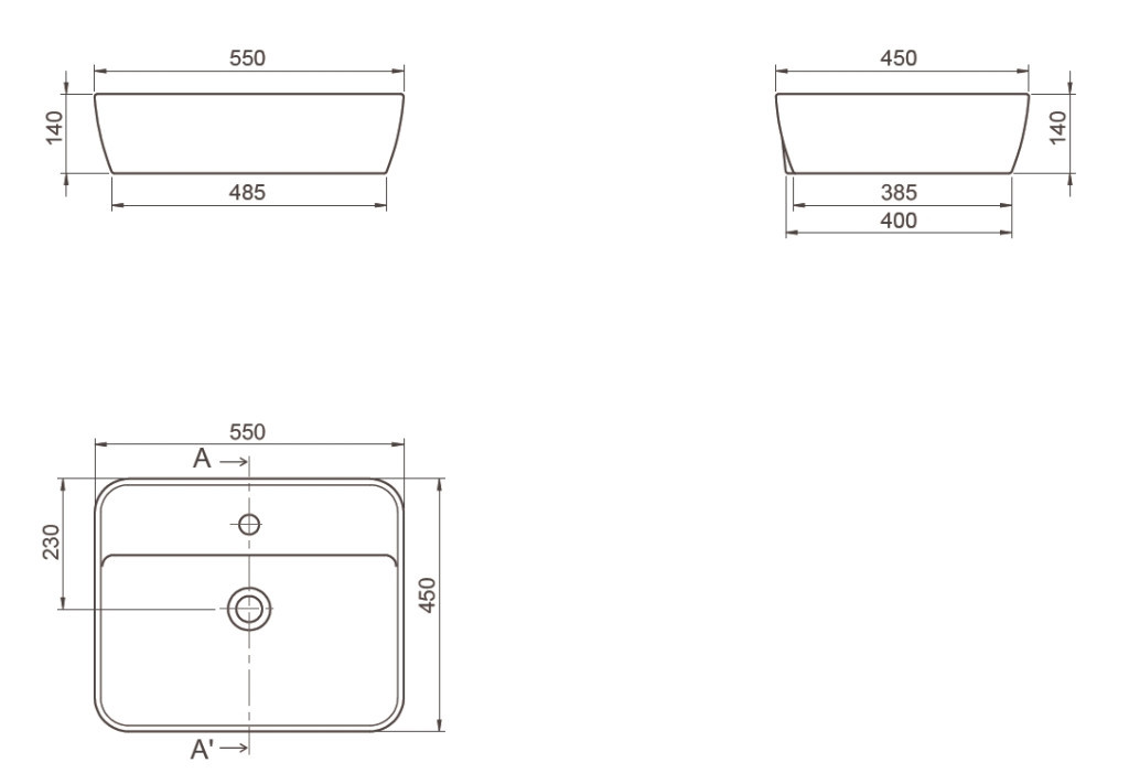 CeraStyle ONE – PULTRA ültethető – Top Counter mosdó – MATT CAPPUCINO – csaplyukas – 55 x45cm