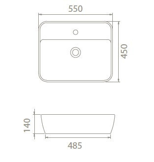 CeraStyle ONE Top Counter – szögletes – pultra ültethető porcelán mosdókagyló csaplyukas 55 x 45 cm