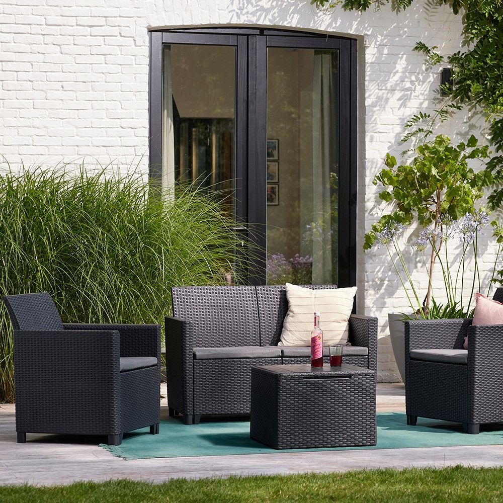 Claire 4 személyes kerti bútor garnitúra párnatartós asztallal grafit
