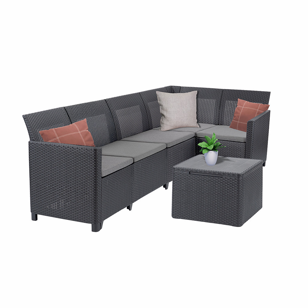 A kompakt és letisztult megjelenésű sarokgarnitúra kiváló választás akár kisebb teraszokra is. Modern formatervezése illeszkedik a legtöbb kültéri enteriőrhöz, így esztétikai élményt is nyújt.