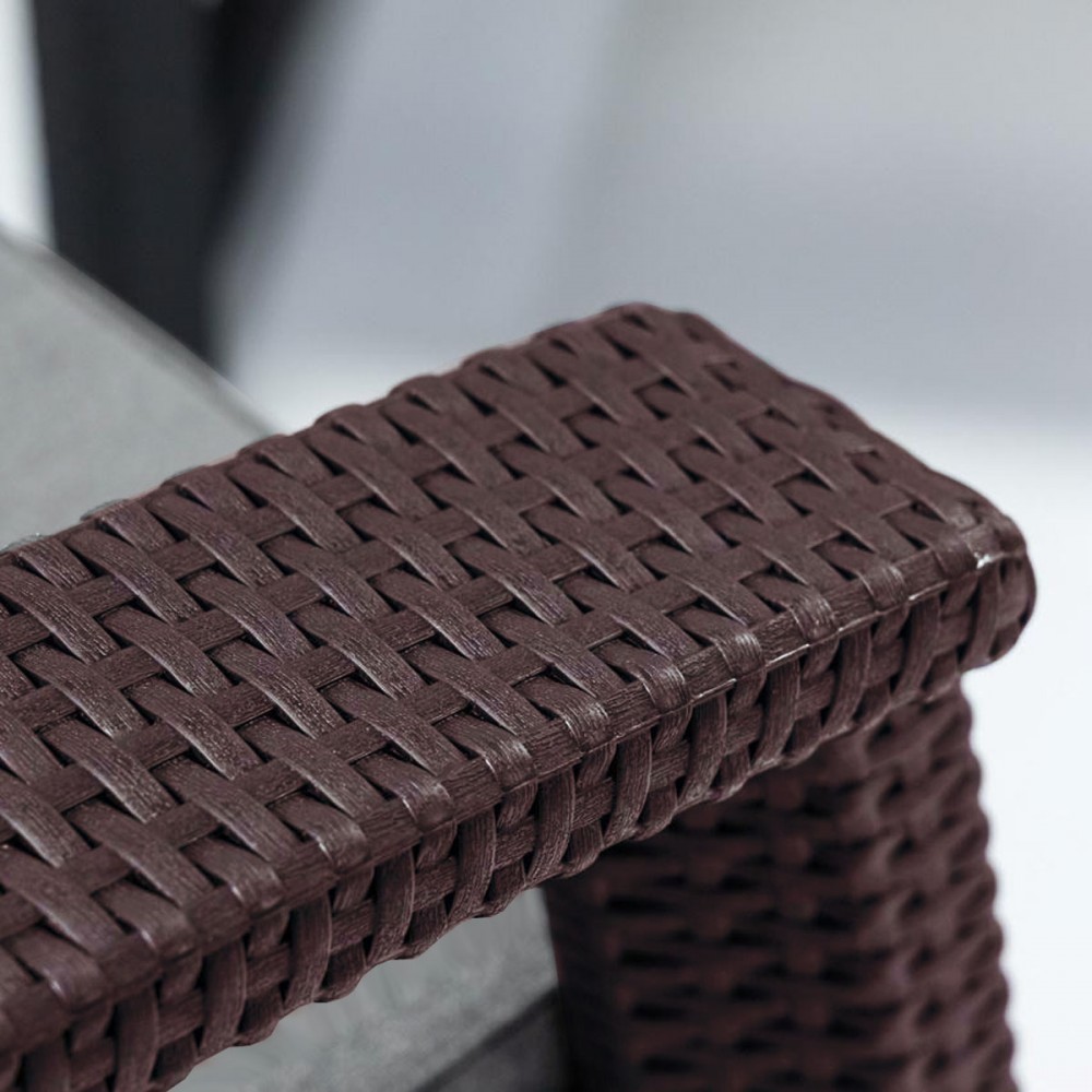 A bemutatott készlet megvalósítása – polyrattan utánzása. A bútorok anyaga tökéletesen utánozza a polirattant – valójában nehéz megkülönböztetni a valódi fonattól. A polipropilén mellett a gyárilag préselt polipropilén időjárásálló. Az erős napsütésben is védett a fakulás ellen, köszönhetően annak, hogy a polipropilén ellenáll az UV sugárzásnak . Ebből az anyagból készült bútorokat szintén nagyon könnyű tisztán tartani. Kis mennyiségű mosószer vagy akár nedves ruha is elegendő a makacs foltok megszabadításához.