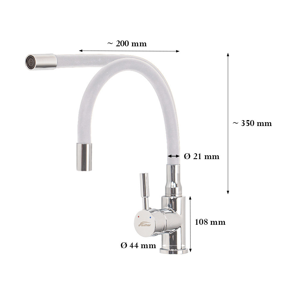 A rugalmas kifolyócső lehetővé teszi a kifolyó mélységének változtatását 150 mm-től 350 mm-ig. Így a Corin csaptelep segítségével könnyedén beállíthatjuk a megfelelő mélységet, hogy kényelmesen használhassuk a mosogatót.