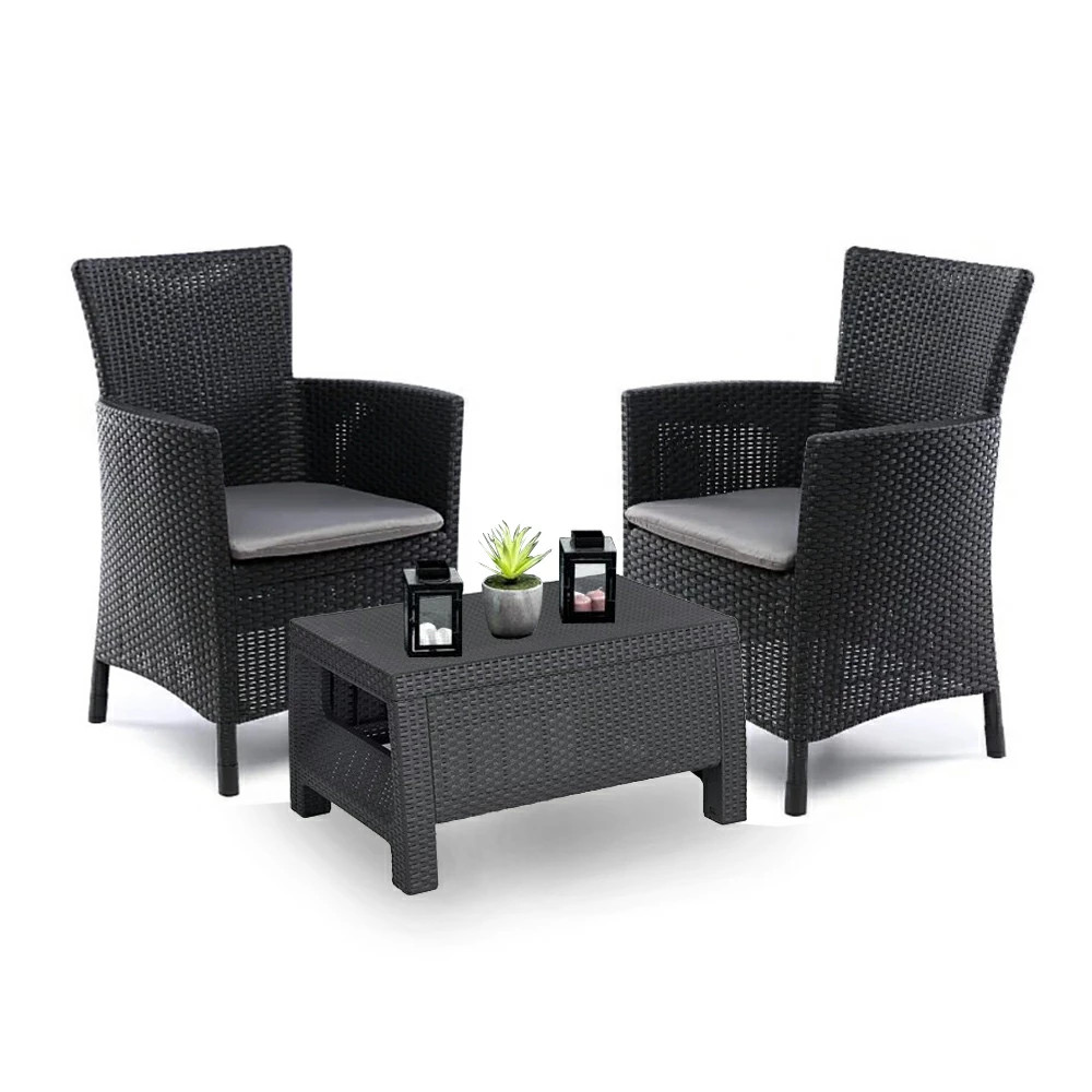 Az Corowa balcony kerti bútor garnitúra szett egy elegáns és kényelmes kerti bútor kompletten. A széles színválaszték és az eredeti, rattanra emlékeztető felület még a legigényesebb felhasználó igényeit is kielégíti. UV sugárzásnak és az időjárás viszontagságainak ellenálló műanyagból készült. Könnyű tisztán tartani és nagyon egyszerű összeszerelni.