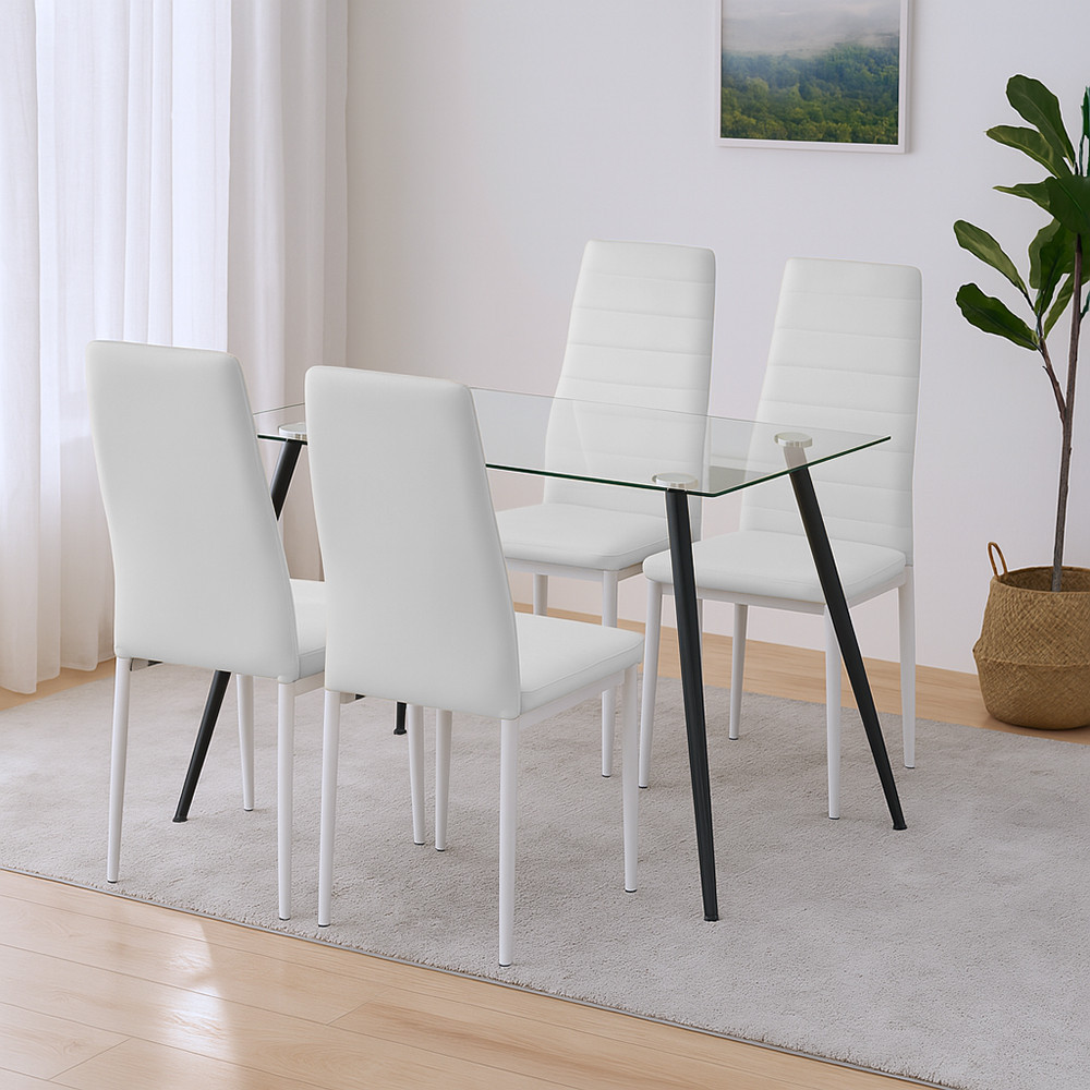 Cruz 4+1 étkezőgarnitúra – Teljes fehér elegancia edzett üvegasztallal és modern étkezőszékekkel