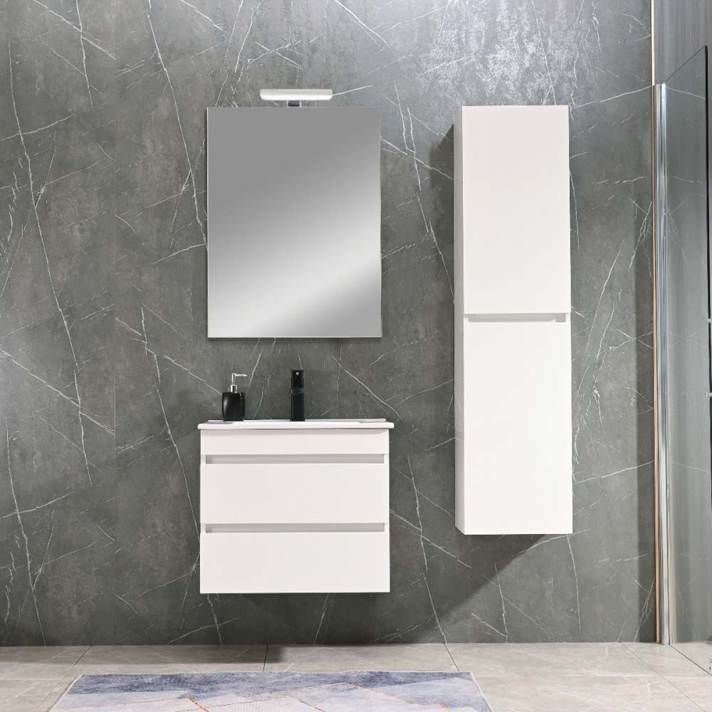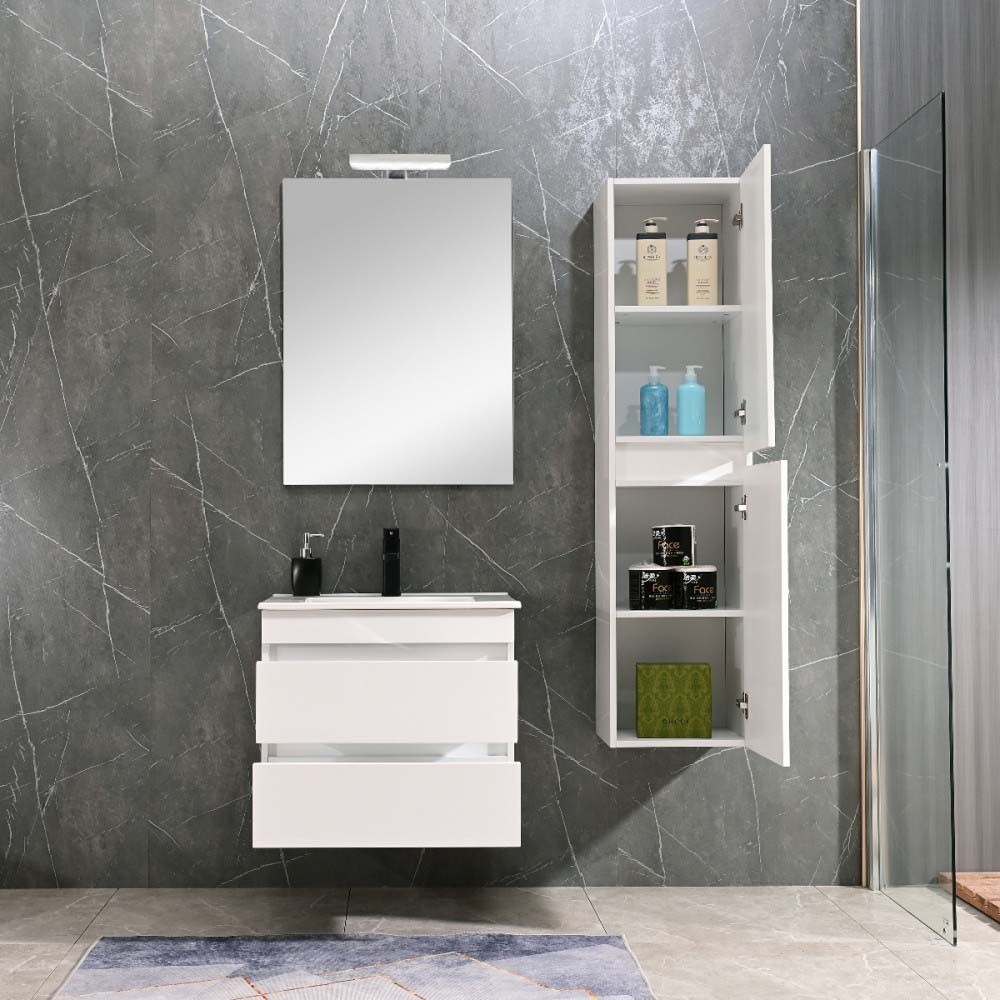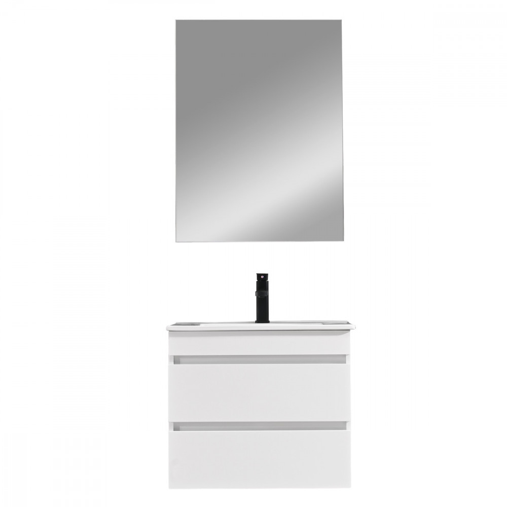 Cube Fürdőszobabútor 60 cm kerámia mosdóval (2 fiókos) tükörrel 60×80 cm magasfényű festett fehér