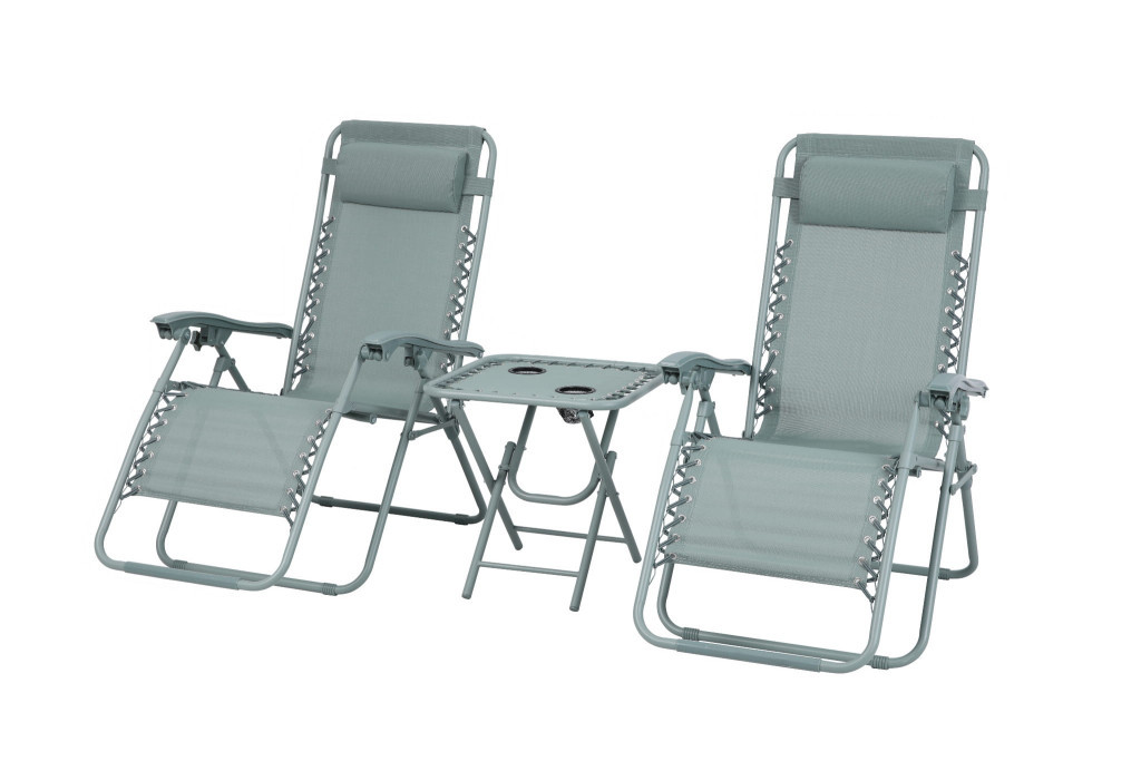 Ez a komplett szett, amely két állítható magasságú nyugágyból és egy praktikus összecsukható asztalból áll, tökéletes megoldás kerti, teraszi vagy strandi használatra. A nyugágyak kényelmet és funkcionalitást kínálnak , így tökéletesek kültéri tevékenységekhez. Az összecsukható nyugágyak lehetővé teszik, hogy a pihenőhelyet könnyedén a saját igényeihez igazítsa. Az asztallapon található praktikus pohártartók lehetővé teszik, hogy kényelmesen élvezhesse kedvenc italát pihenés közben.