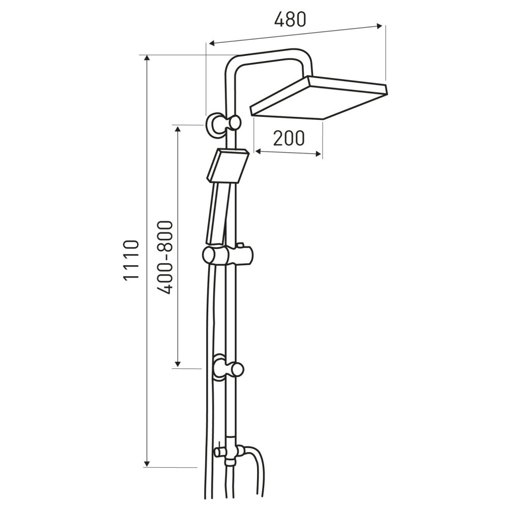 Az aranyszínű kiegészítőkkel ellátott fekete zuhanykészlet mérete 110 x 20,5 x 48 cm. A zuhanyon beállíthatja a rögzítőkonzolok távolságát 30 és 80 cm között. A Denis 63 zuhanykészlet tartós és sérülésálló 150 cm hosszú tömlővel és fogantyúval van felszerelve, amely lehetővé teszi a kézibeszélő kényelmes felakasztását. A készletben található zuhanyfej és esőzuhany egy típusú fúvókával rendelkezik. A Denis 63 zuhanykészlet elegáns, négyzet alakú esőzuhanyfejjel rendelkezik, arany színben. Méretei 20×20 cm.