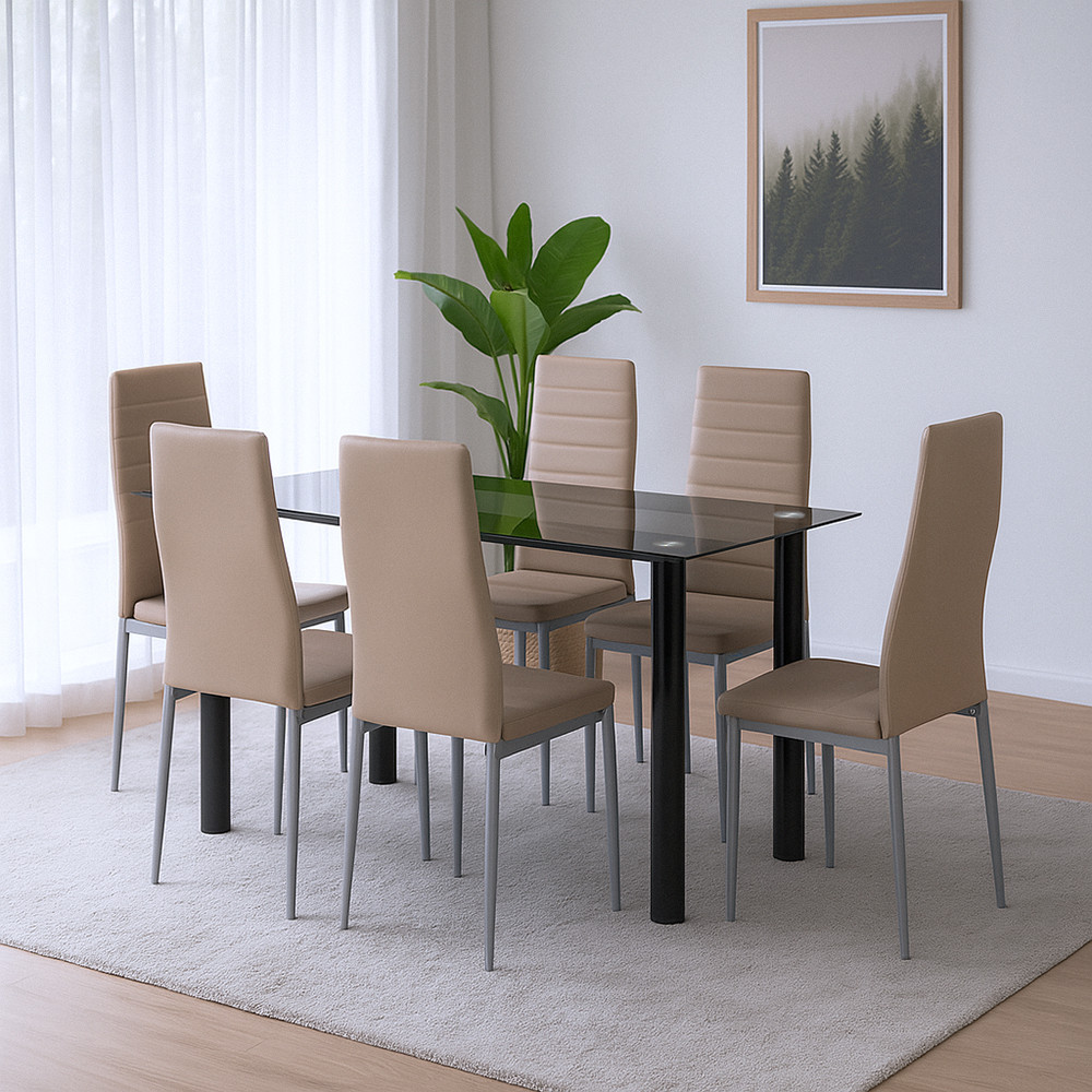 Denton 6+1 étkezőgarnitúra – Modern bézs-szürke stílus nagyobb asztallal és kényelmes székekkel