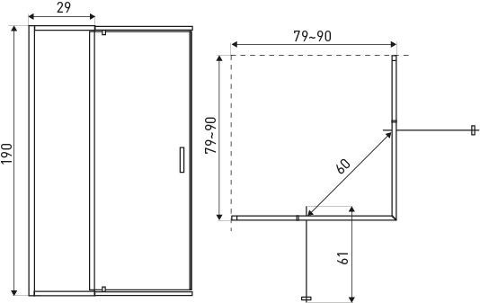 • Állítható szélességű kabin – különböző méretekben, például 80×80, 80×90, 90×90 cm