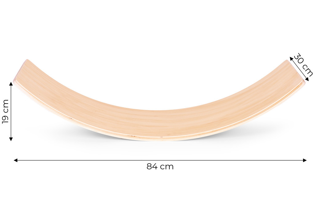 • A vastag, hajlított rétegelt lemezből készült deszkát kivételes tartósság és esztétika jellemzi. Ez egy tökéletes megoldás az igényes szülők számára, akik biztonságos és tartós játékokat keresnek gyermekeiknek.