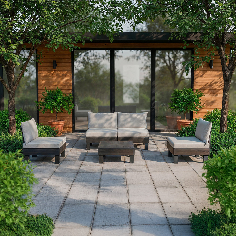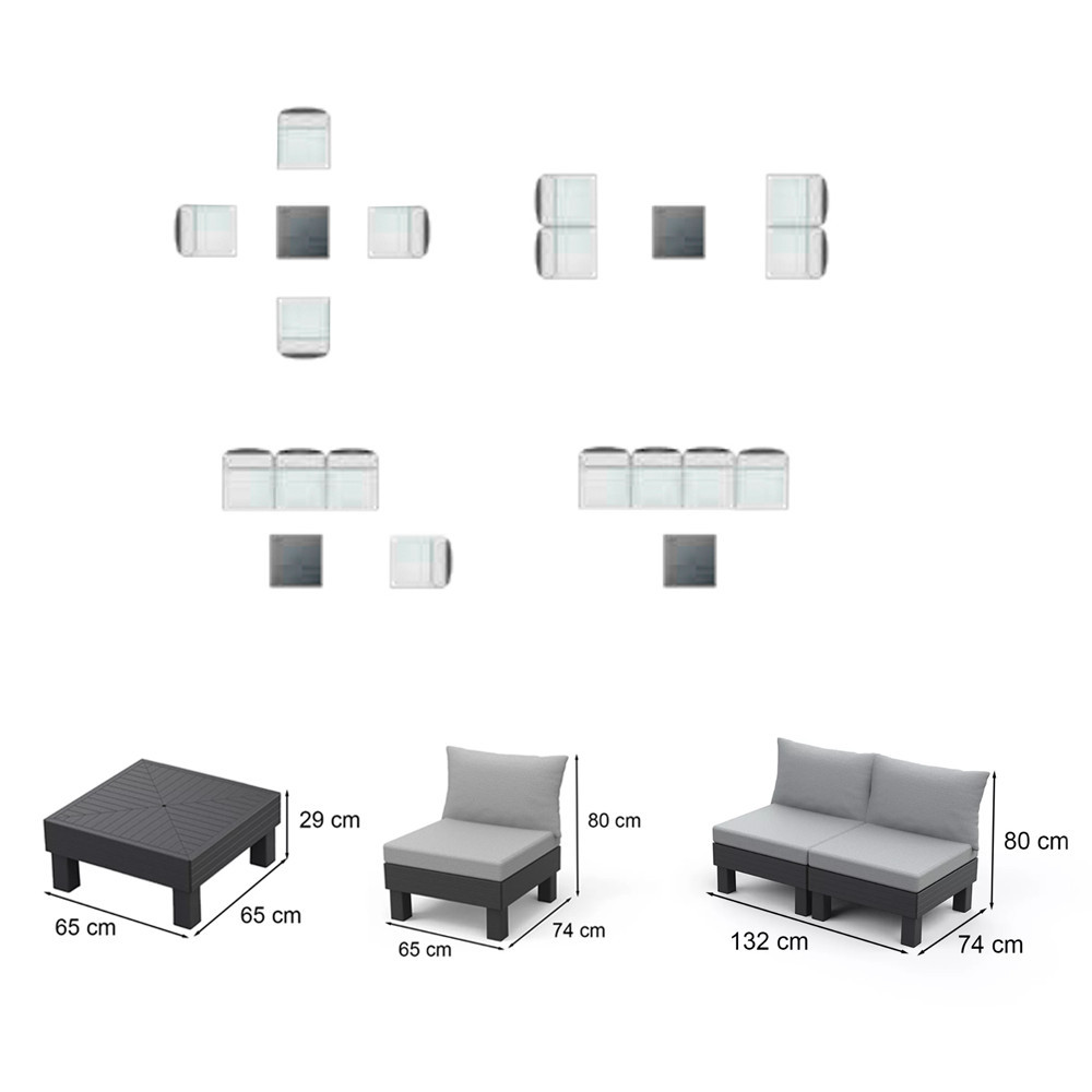 A szett könnyű szerkezete miatt egyszerűen áthelyezhető, a moduláris kialakítás pedig lehetővé teszi, hogy a bútorokat a tér adottságaihoz igazítsd.