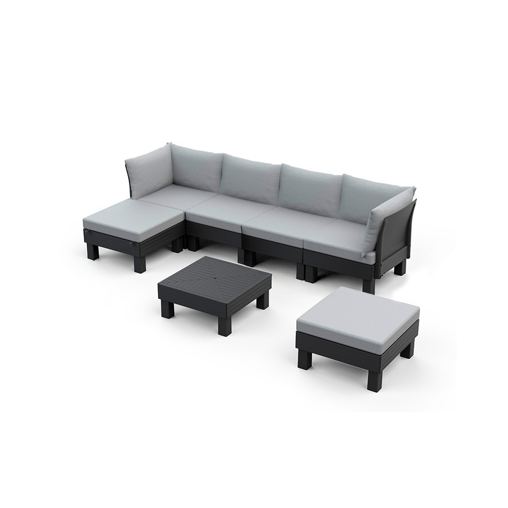 Keter Elements IV 6 személyes kerti bútor garnitúra grafit – modern, moduláris és kényelmes megoldás minden kültéri térbe