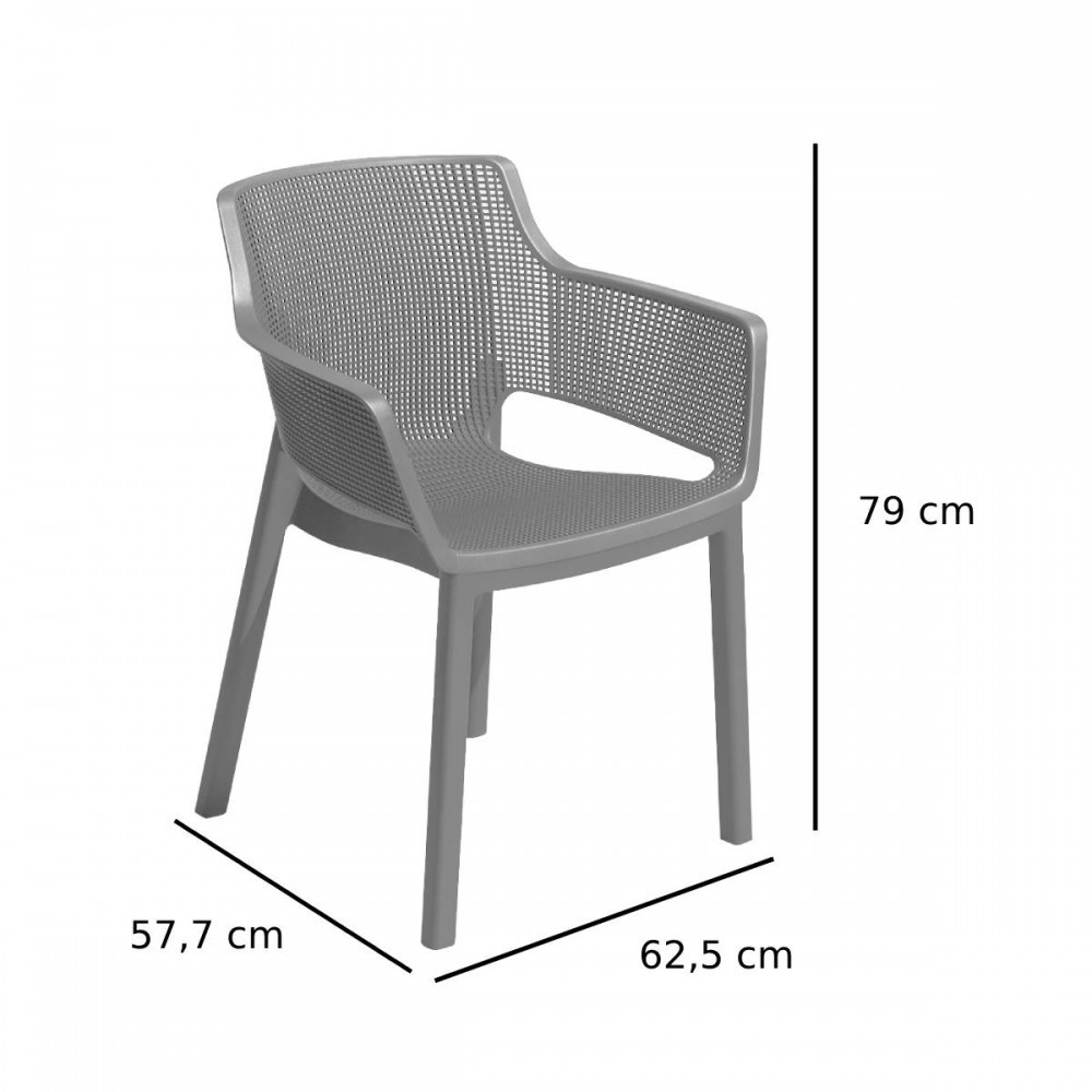 Az Elisa modern megjelenésű és rendkívül kényelmes szék. A profilos háttámla és az ülés, valamint a puha, lekerekített kartámasz a termék valódi előnye. Kortárs háló / háló textúra, könnyen tisztítható és egymásra rakható. Ideális beltéri és kültéri használatra.