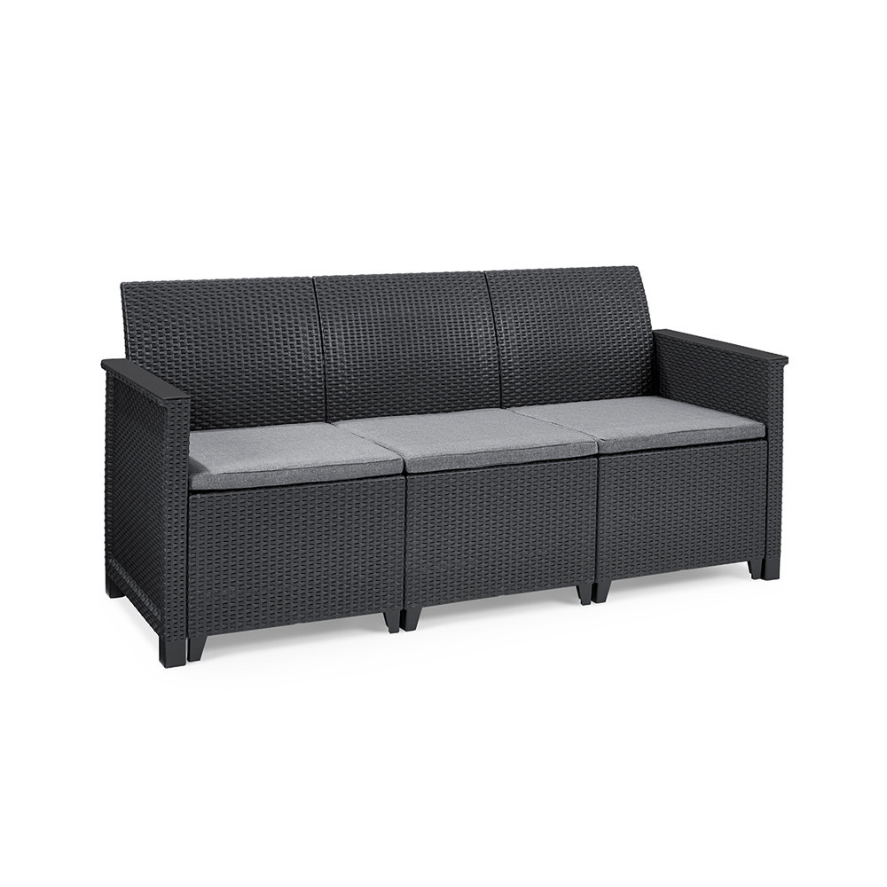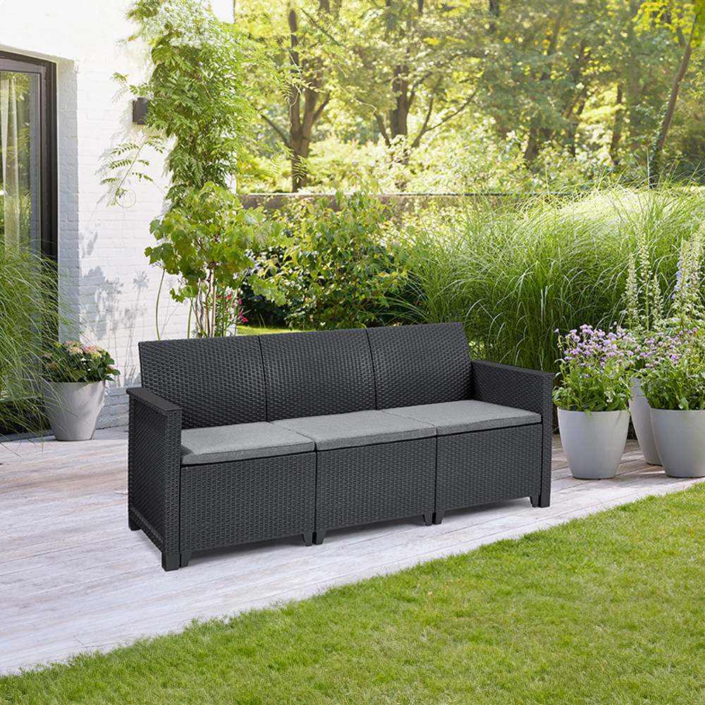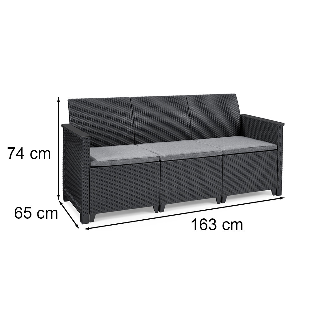 Elodie 3 személyes műrattan kerti kanapé grafit