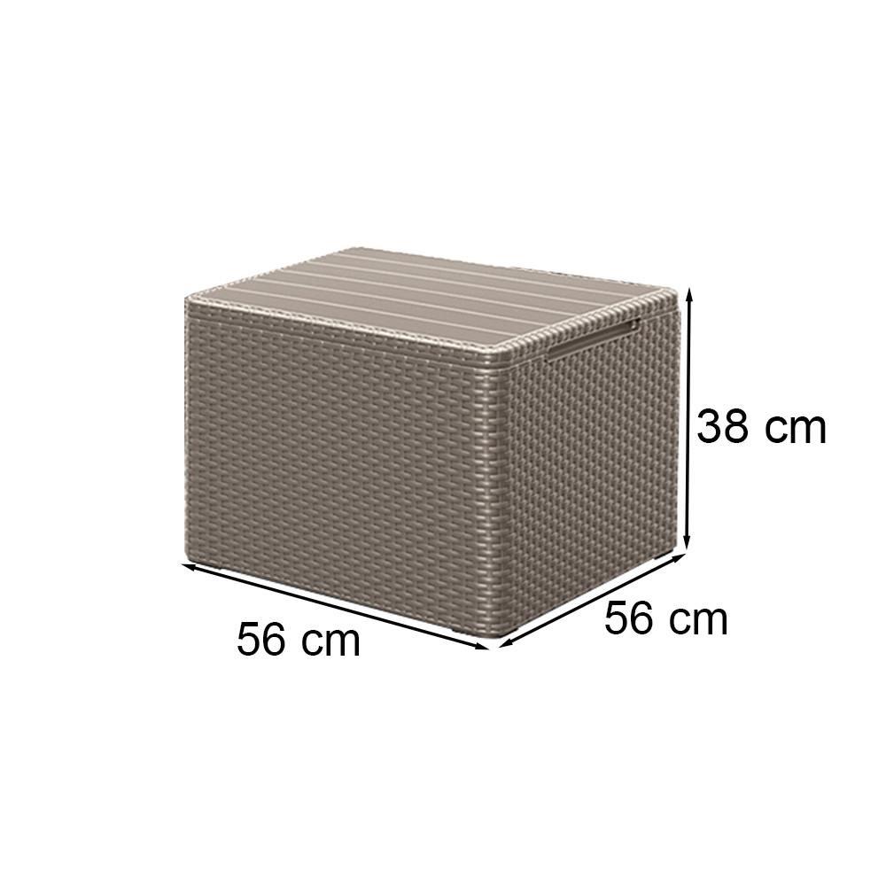 Ez a cappuccino színű rattan hatású kerti bútor szett két székkel és egy több funkciós asztallal rendelkezik, amelyeket időjárásálló műanyagból készítettek, így nem kell aggódnod a UV sugárzás hatásaitól sem. A szék magassága: 74 cm, szélessége: 63 cm, hossza: 65 cm. A szék párnával rendelkezik, mely kényelmessé teszi és színben passzol a bútorhoz. Az asztal magassága:38 cm, szélessége: 56 cm, hossza: 56 cm.