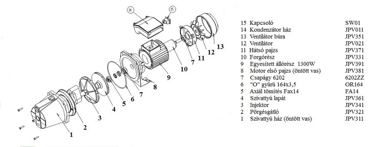 Az Elpumps JPV 1300 kerti szivattyú belső szerkezeti elemei a korróziónak és a kavitációnak jól ellenálló magas minőségű NORYL PPO polimerből, a szivattyú háza öntöttvasból készül. A tengely tömítését modern karbon-kerámia csúszógyűrűs tömítés látja el.