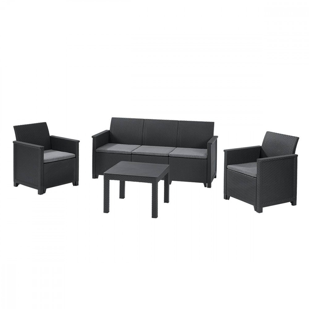 Az Emma egy kényelmes és elegáns bútor szett két fotellel, kanapéval és egy négyszögletes asztallal.Nagyszerű választás ha napközben szeret az udvaron pihenni és olvasgatni. Alkalmas családi összejövetelekhez. Ez a szett minden udvart és teraszt színesebbé tesz modern megjelenésével.