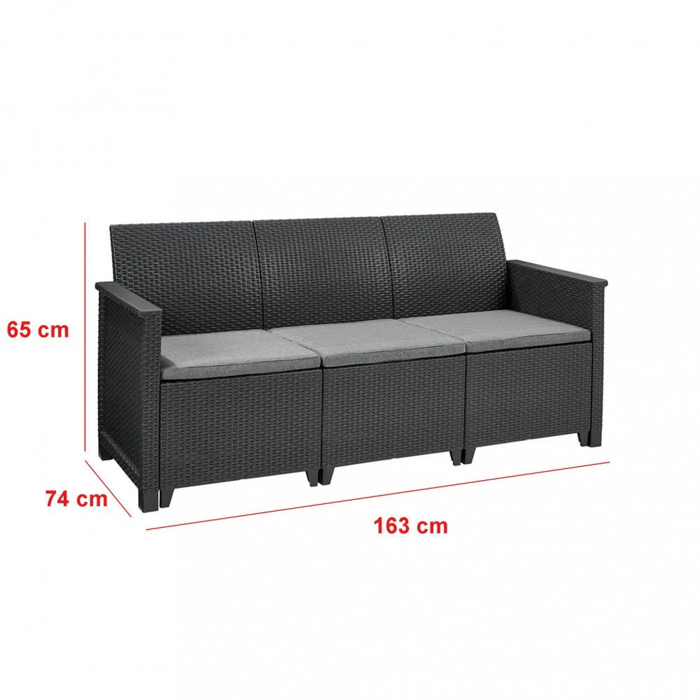 Emma műrattan kerti bútor szett 3 üléses kanapéval chicago asztallal grafit színben