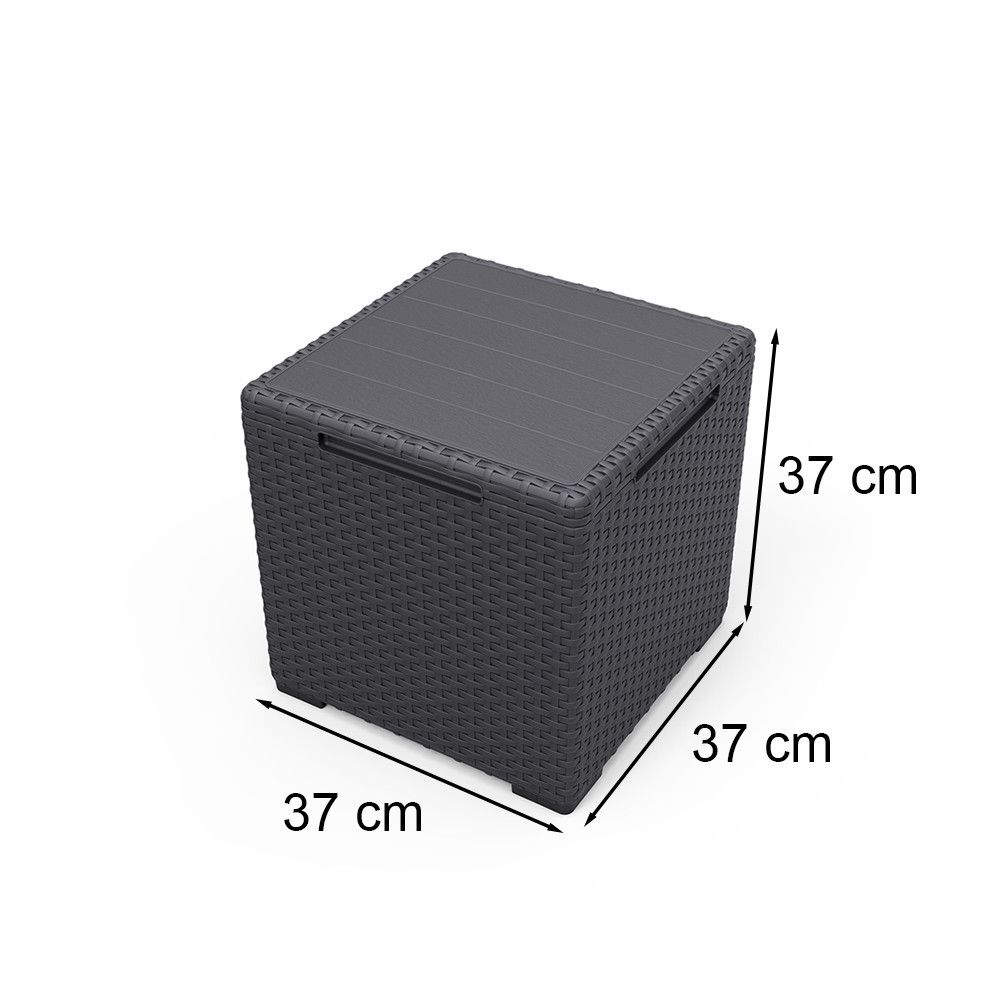 A Vigo kerti tárolós asztal tökéletes választás, ha több funkciós bútort keresel a teraszra vagy az erkélyre. A grafit színű, rattan hatású műanyag asztal nemcsak egyedi és modern kiegészítője a teraszodnak, hanem hasznos tárolóhelyként is szolgál.