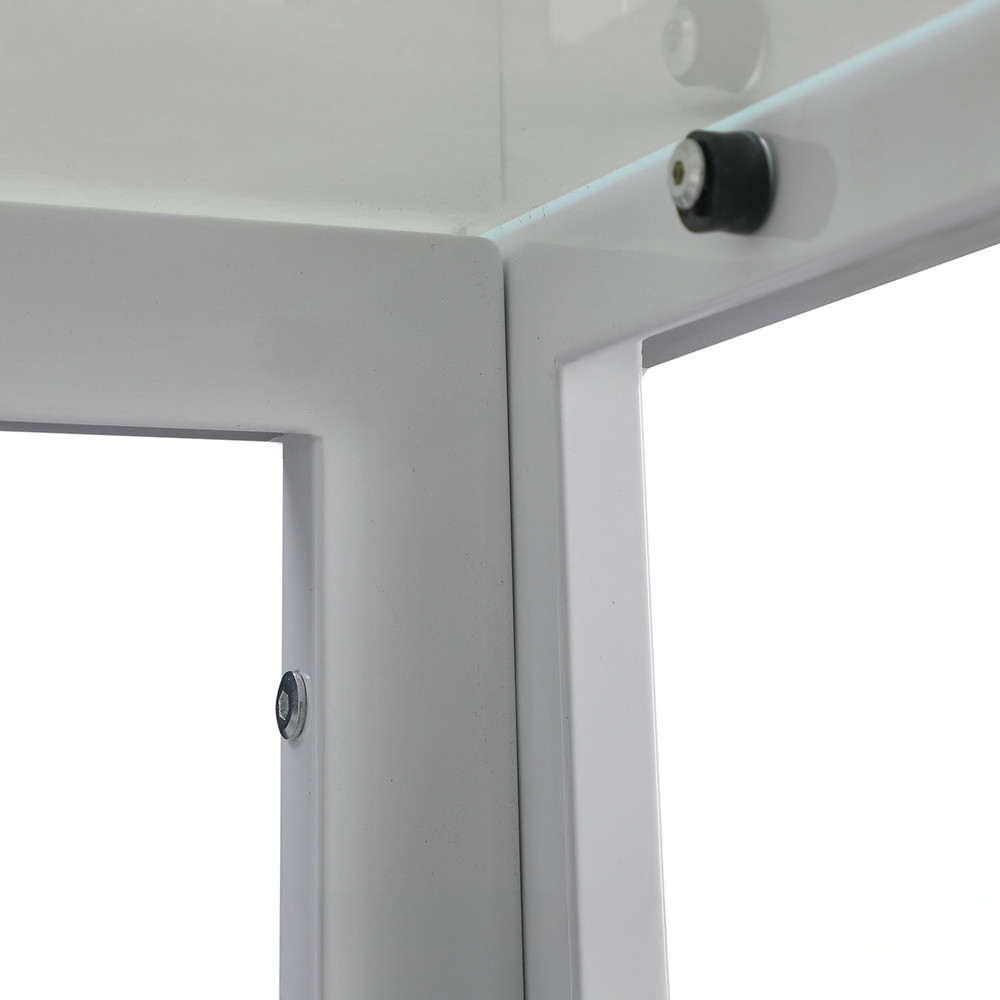 Az edzett üveg technológia garantálja, hogy az asztallap ellenáll a karcolásoknak, hőhatásoknak és mechanikai sérüléseknek. A 20×40 mm-es fém lábak speciális bevonattal rendelkeznek, amely megakadályozza a korróziót és a kopást, így az asztal hosszú éveken át megőrzi eredeti szépségét és stabilitását.