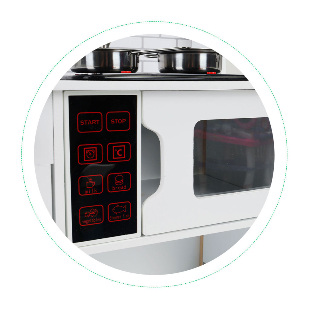 A konyhában elengedhetetlen a rend, és a nagyszámú nyitható szekrénycsak segít fenntartani ezt. A nagy helykínálat minden szakácsnak és séfnek tetszeni fog, és a játéknak köszönhetően a kisgyermek kialakítja azt a szokást, hogy visszapakolja a dolgokat a helyükre.