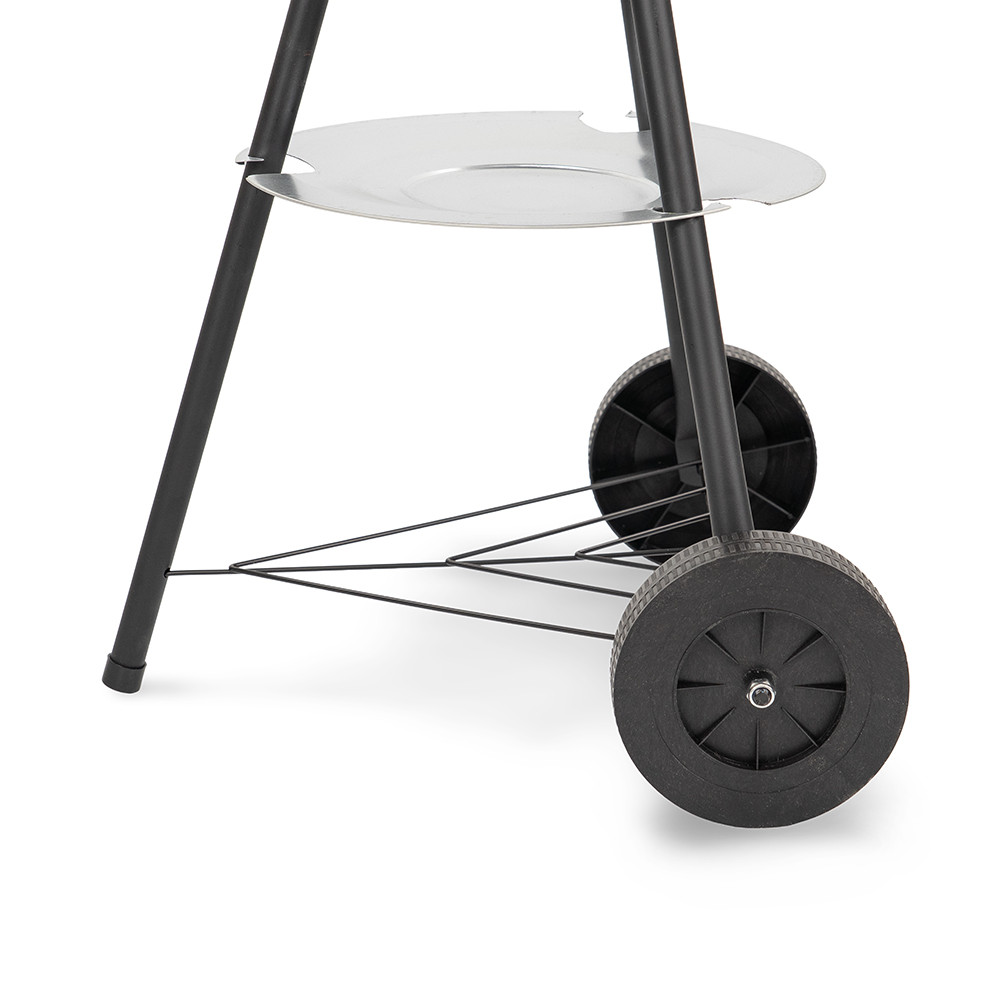 A beépített hamugyűjtő tál lehetővé teszi a könnyű takarítást, így a felesleges hamu nem szóródik szét a kertben vagy a teraszon. A fix tárolópolc extra kényelmet biztosít, hiszen itt elhelyezhetők a grillezéshez szükséges eszközök vagy a faszén.
